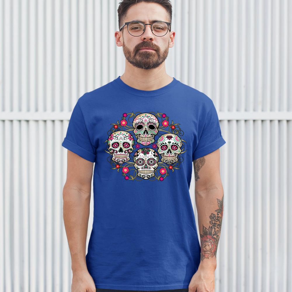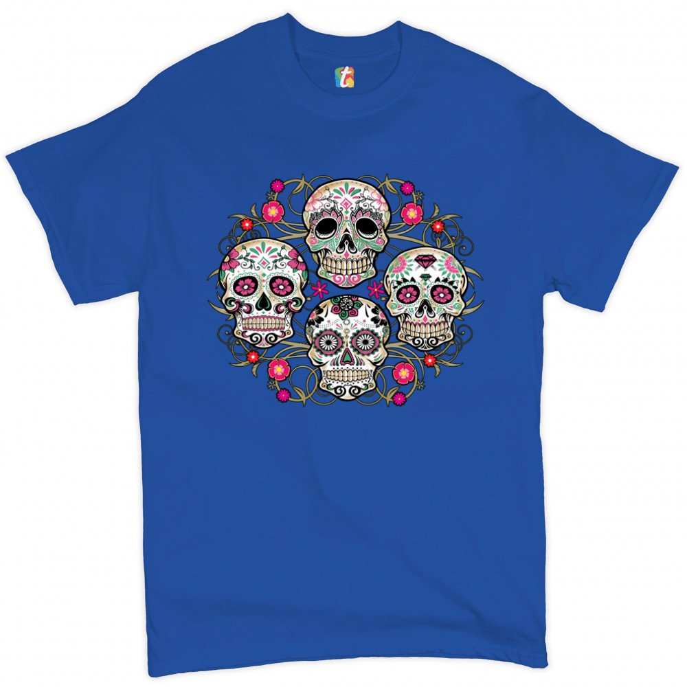 DAY OF THE DEAD FLORAL SUGAR SKULLS t-shirt dia de los muertos men's tee royal blue