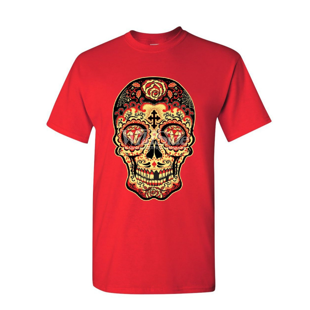 DAY OF THE DEAD SUGAR SKULL t-shirt gold calavera dia de muertos mens tee shirt red
