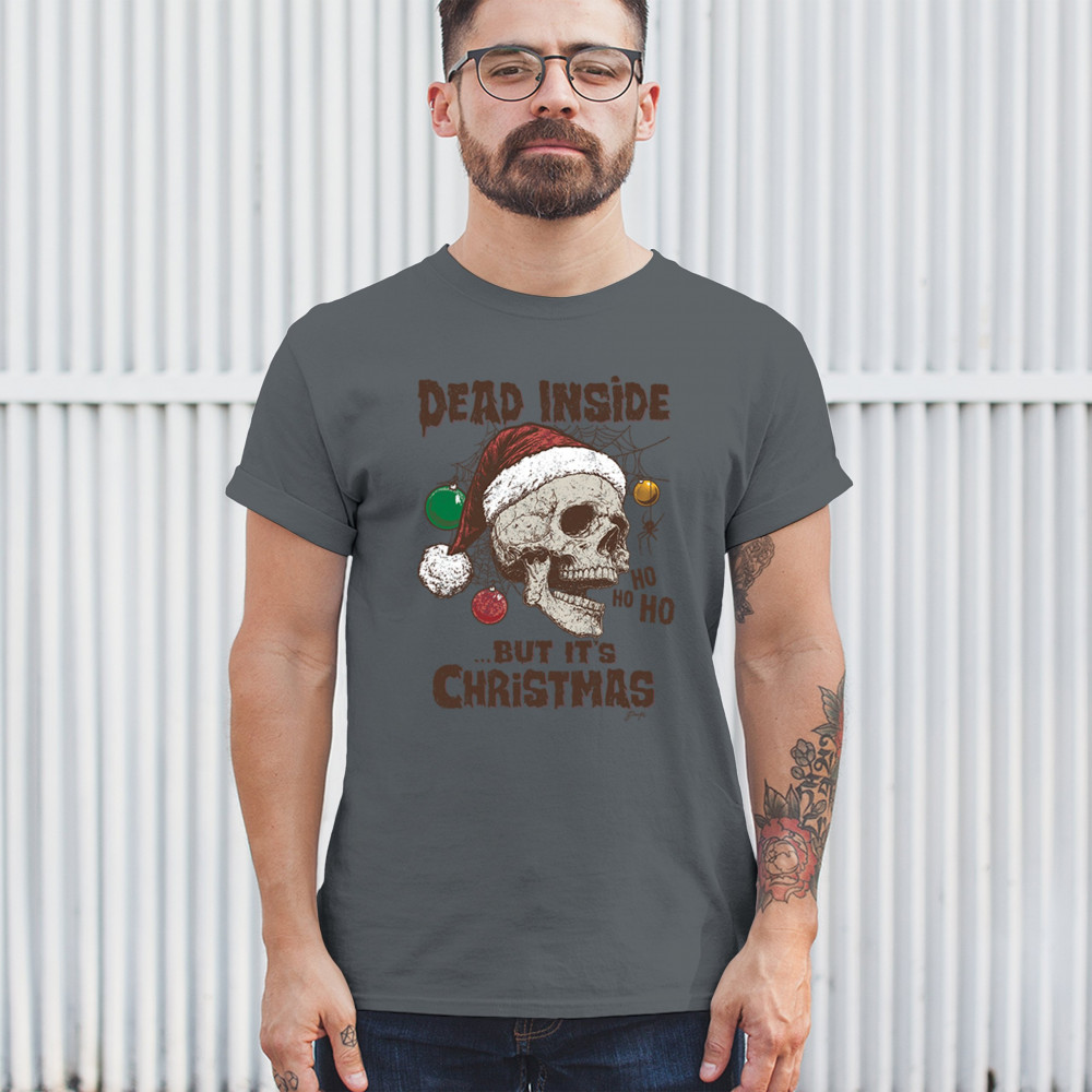 This darkly funny Christmas skull design blends holiday ornaments, grunge textures, and sarcastic energy for an alternative seasonal vibe. Ideal for fans of gothic humor, edgy winter outfits, anti-cheer personality, holiday parties, offbeat Christmas art, moody aesthetics, and anyone who prefers a witty twist on classic festive themes.