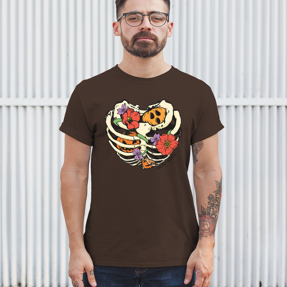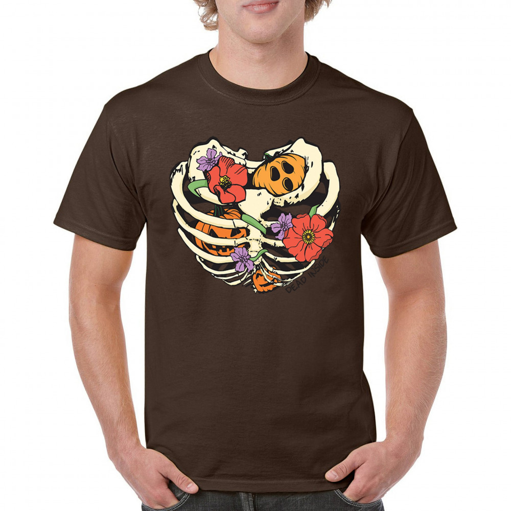 Celebrate Halloween with a quirky and cute design featuring a skeleton ribcage filled with pumpkins and flowers. Perfect for spooky season lovers!