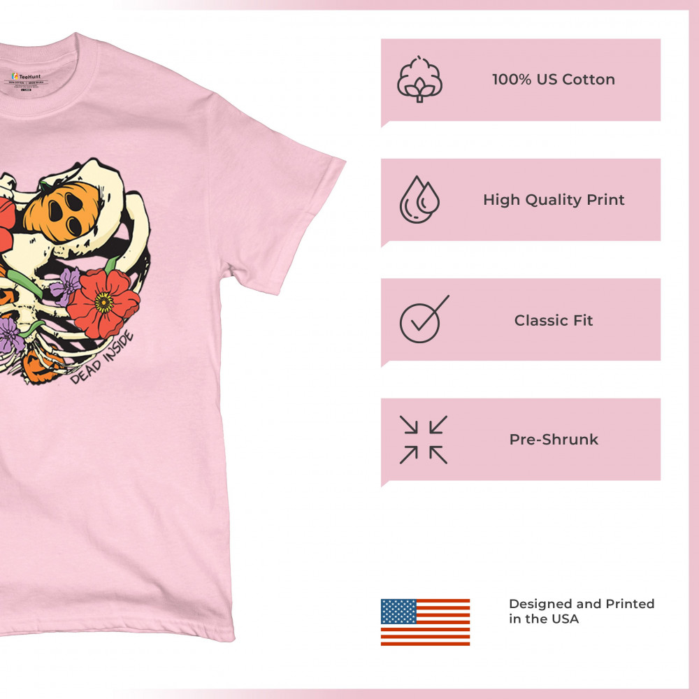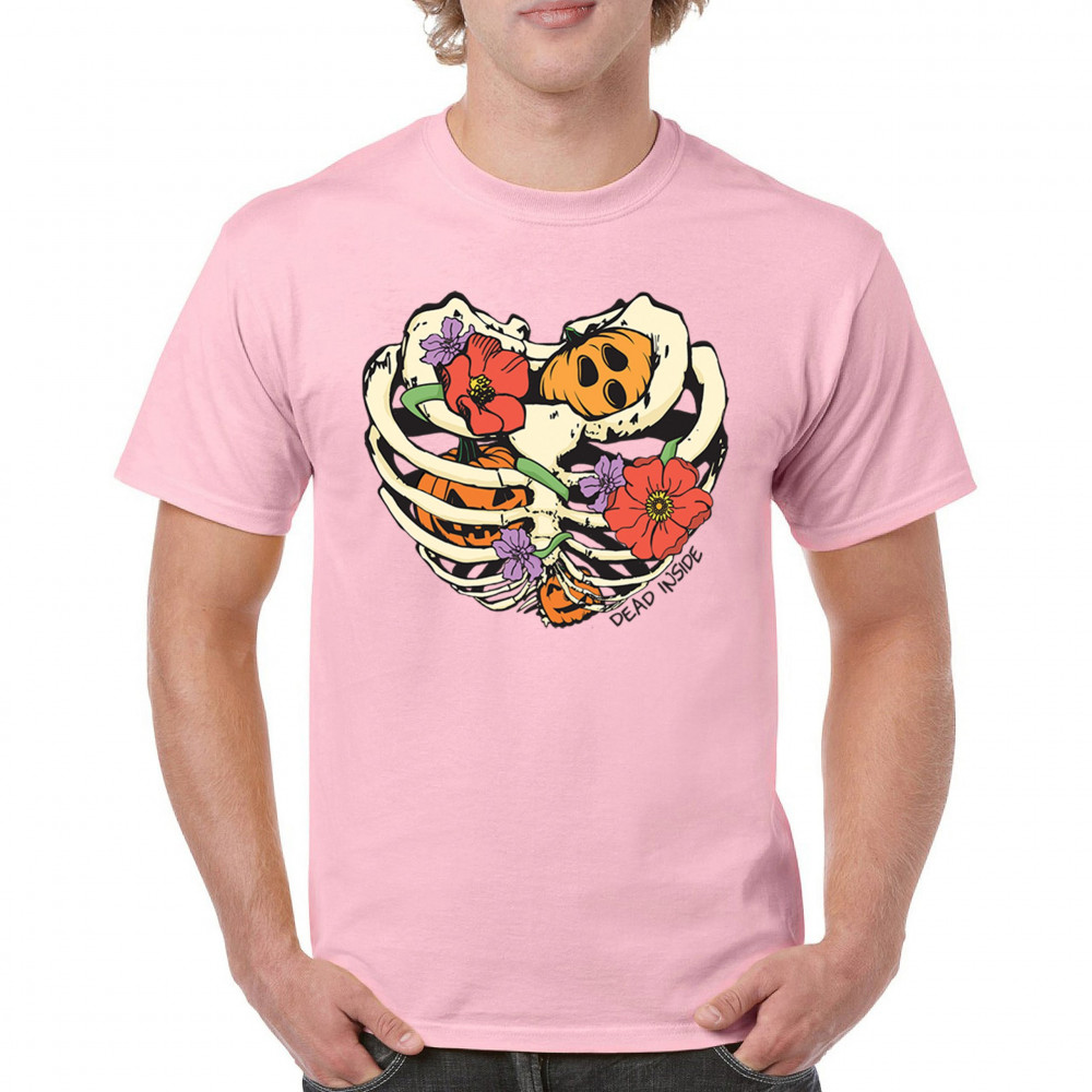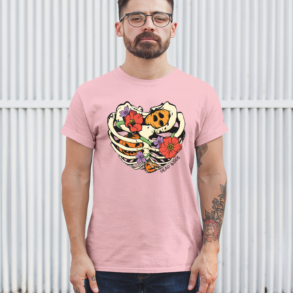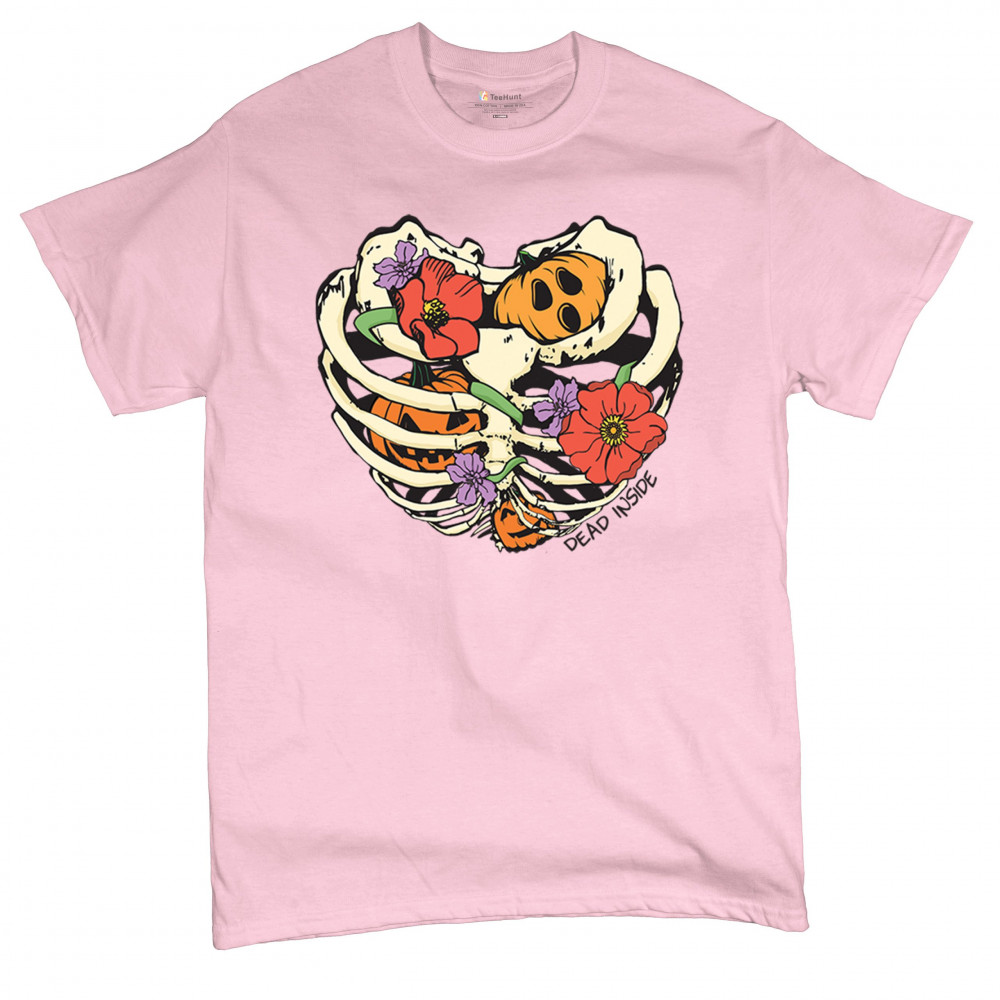 Celebrate Halloween with a quirky and cute design featuring a skeleton ribcage filled with pumpkins and flowers. Perfect for spooky season lovers!