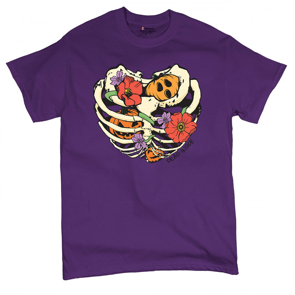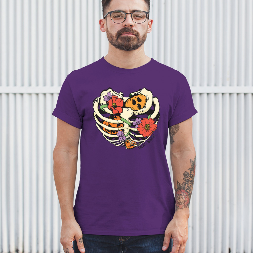 Celebrate Halloween with a quirky and cute design featuring a skeleton ribcage filled with pumpkins and flowers. Perfect for spooky season lovers!