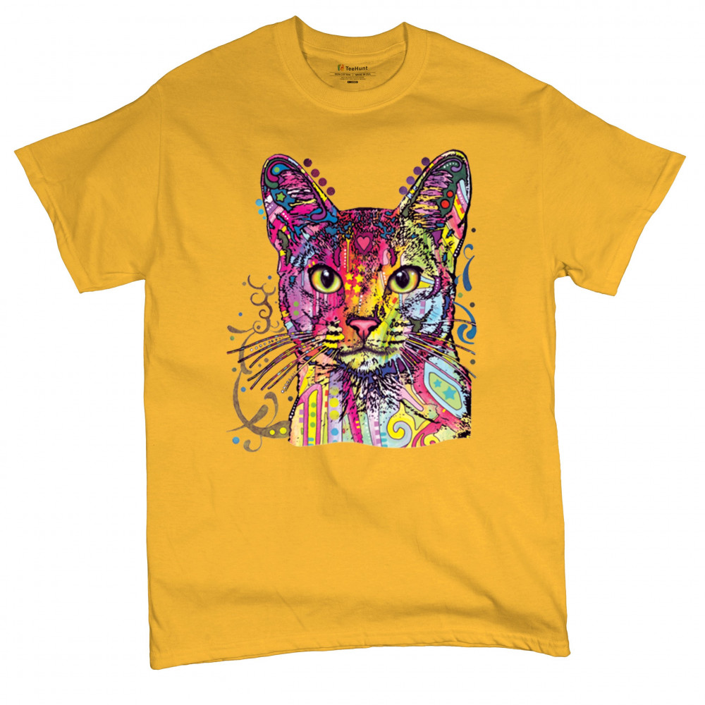 DEAN RUSSO ABYSSINIAN CAT t-shirt colorful cute kitten pet men's tee yellow