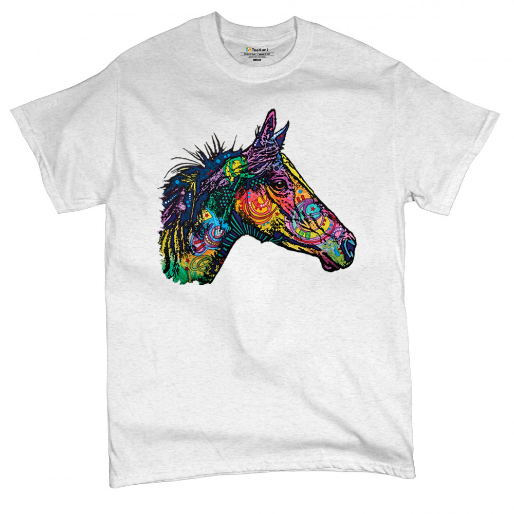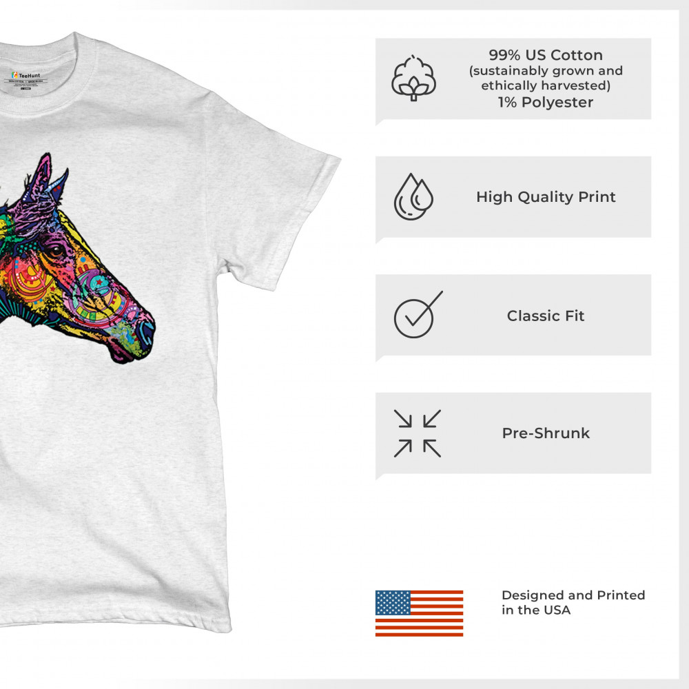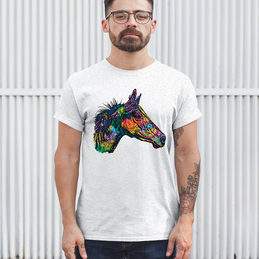 DEAN RUSSO COLORFUL HORSE t-shirt neon mosaic wild mustang animal men's tee ash gray