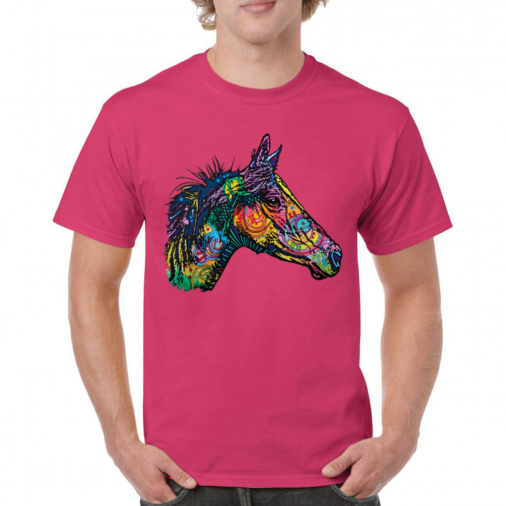 DEAN RUSSO COLORFUL HORSE t-shirt neon mosaic wild mustang animal men's tee hot pink
