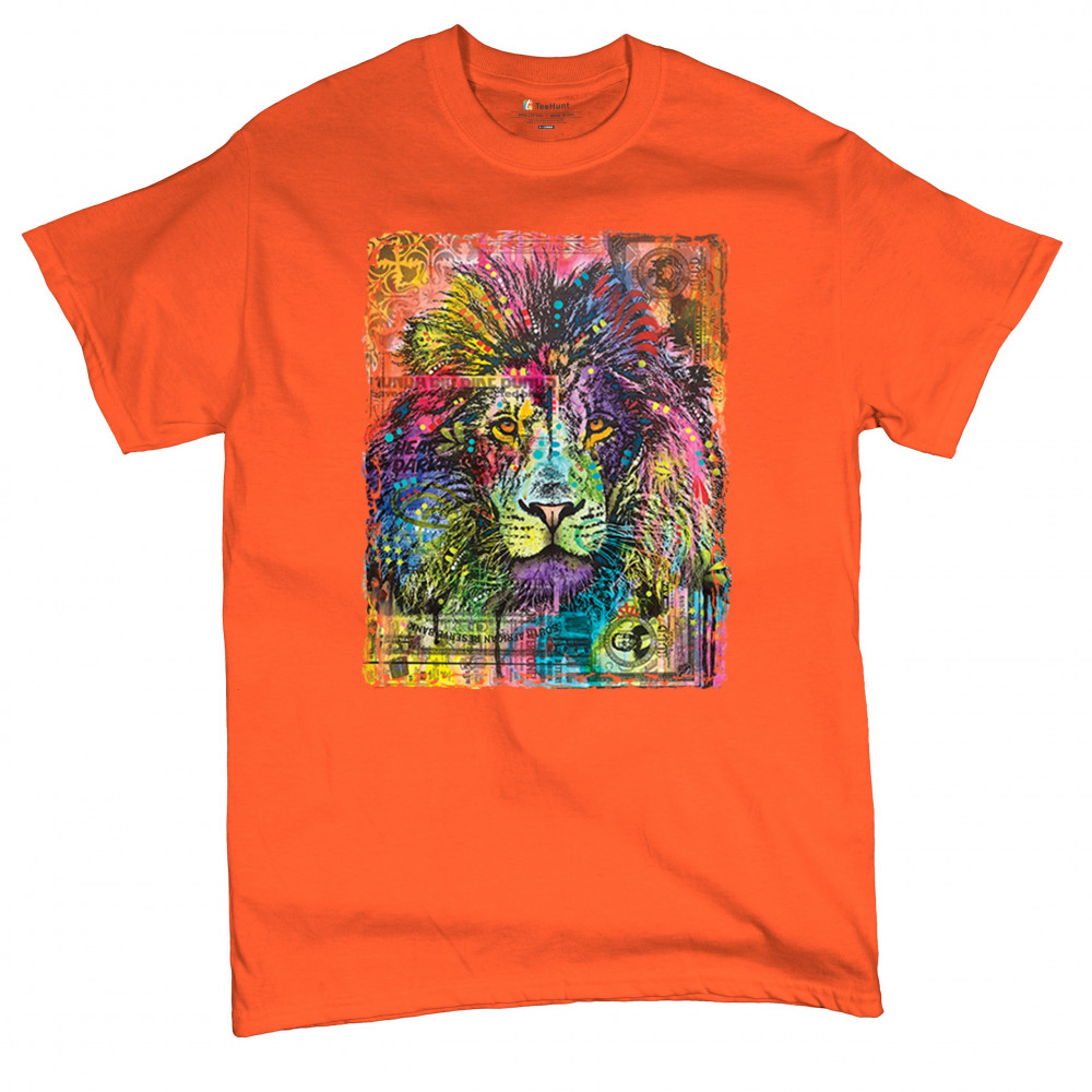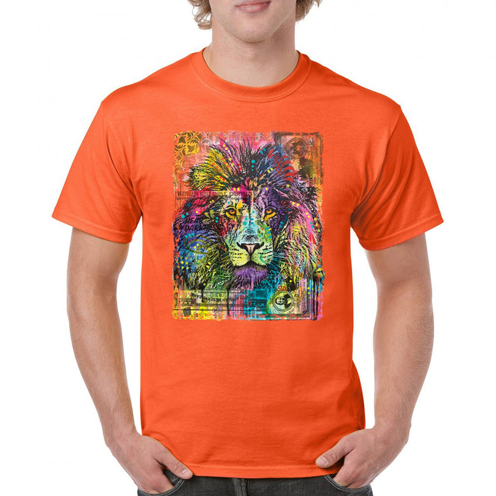 DEAN RUSSO COLORFUL LION HEAD t-shirt wild life king roar big cat men's tee orange