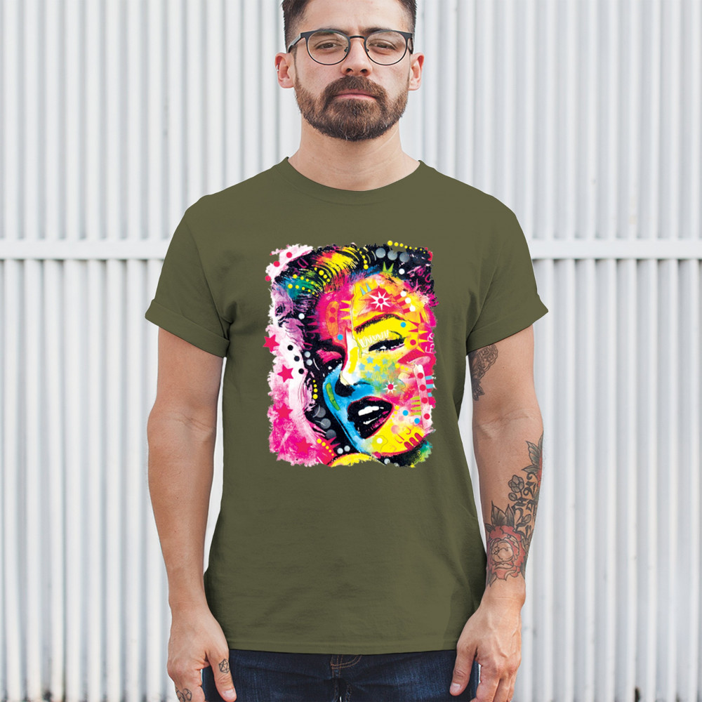 DEAN RUSSO COLORFUL MARILYN t-shirt neon hot symbol starlet men's tee military green