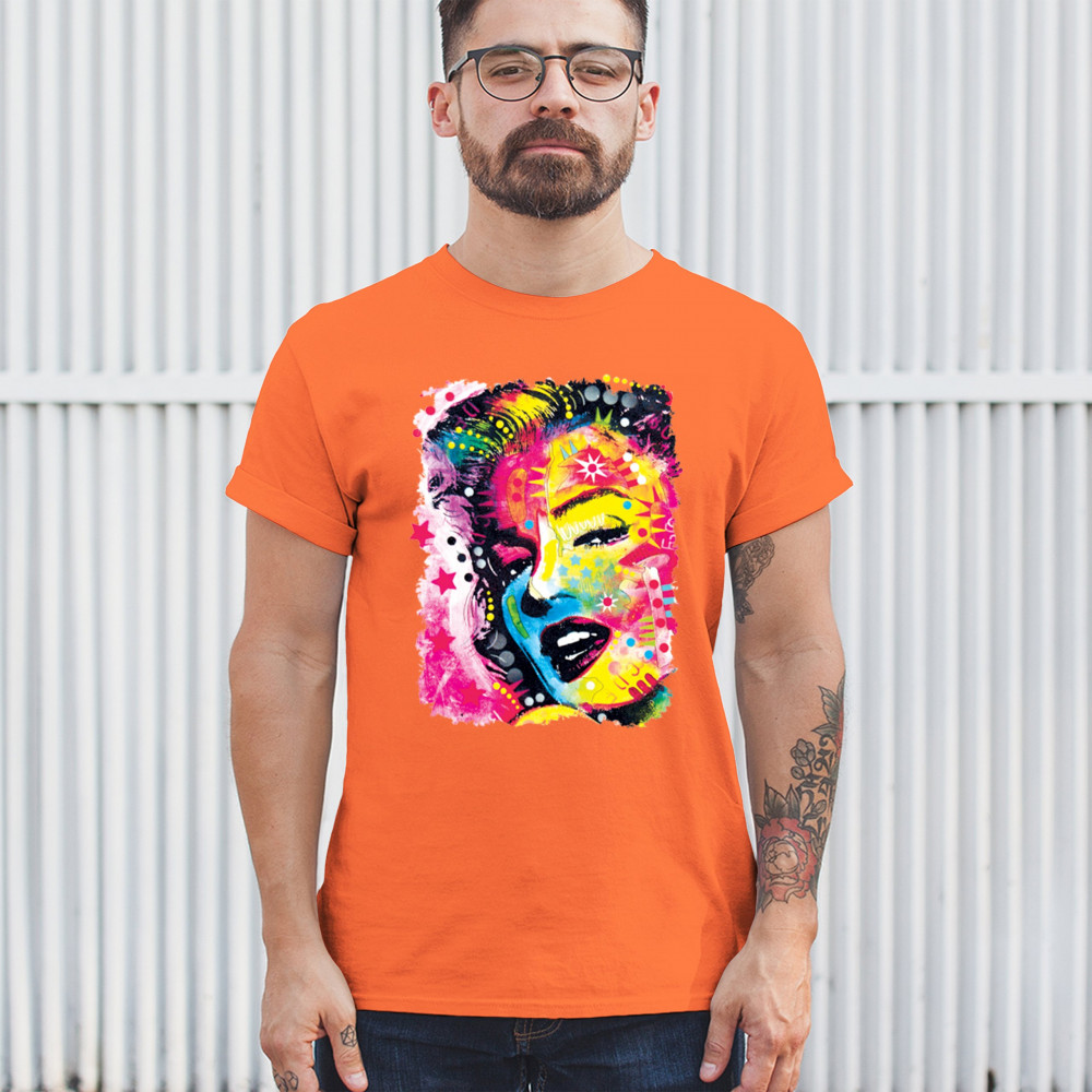 DEAN RUSSO COLORFUL MARILYN t-shirt neon hot symbol starlet men's tee orange