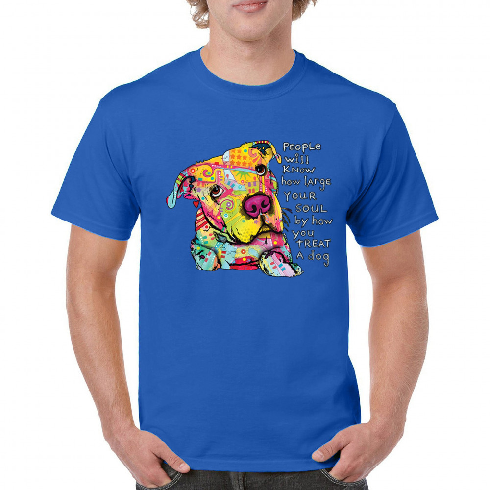 DEAN RUSSO COLORFUL NEON DOG t-shirt how large your soul is pet men's tee royal blue