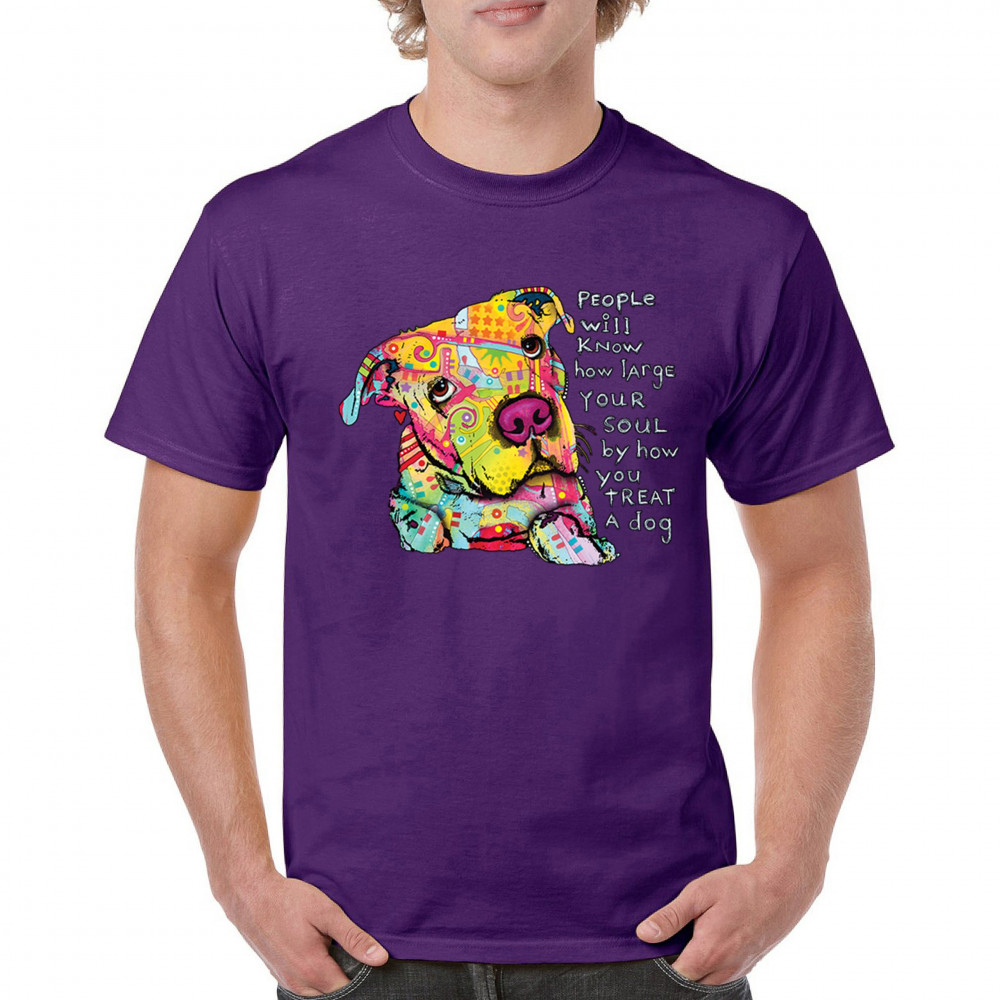 DEAN RUSSO COLORFUL NEON DOG t-shirt how large your soul is pet men's tee purple