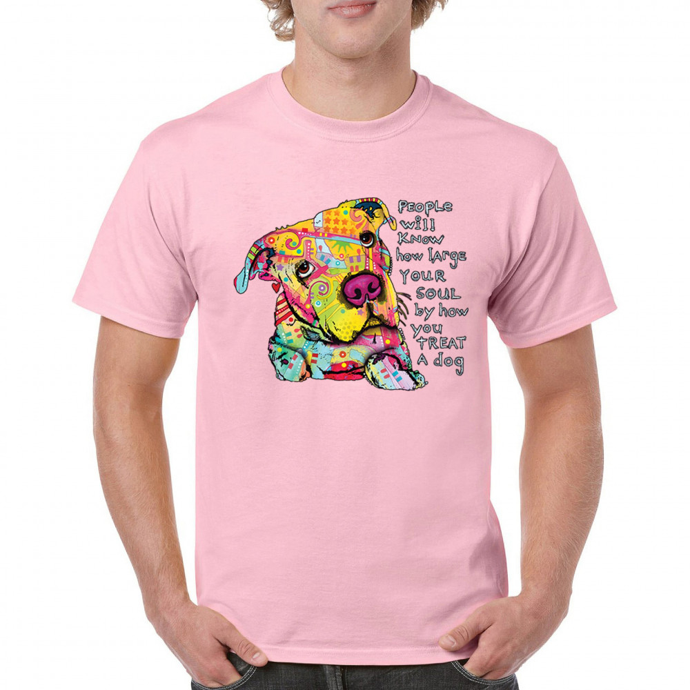 DEAN RUSSO COLORFUL NEON DOG t-shirt how large your soul is pet men's tee light pink