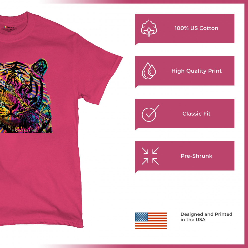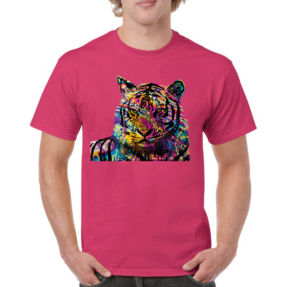 DEAN RUSSO COLORFUL NEON SIBERIAN TIGER t-shirt wild big cat men's tee hot pink