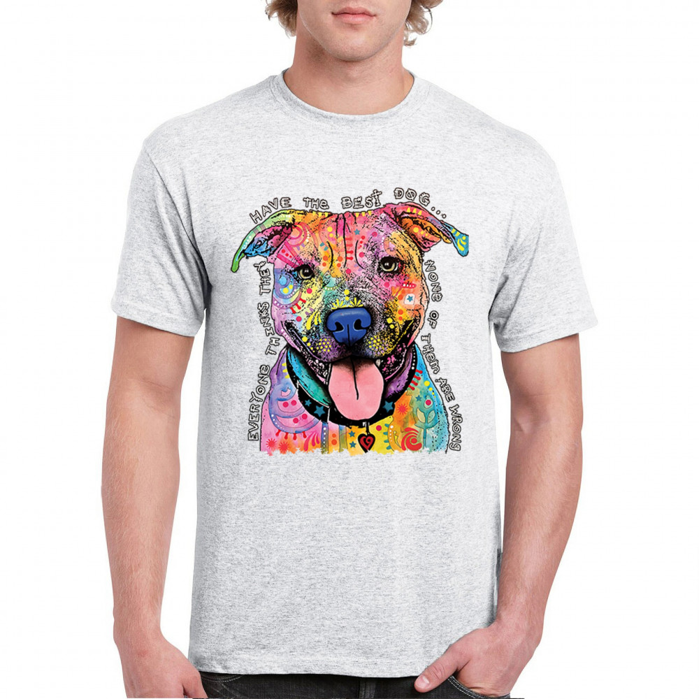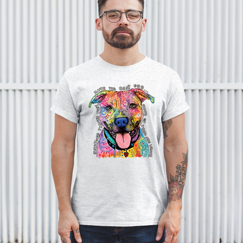 DEAN RUSSO COLORFUL PIT BULL t-shirt everyone has best dogs men's tee ash gray