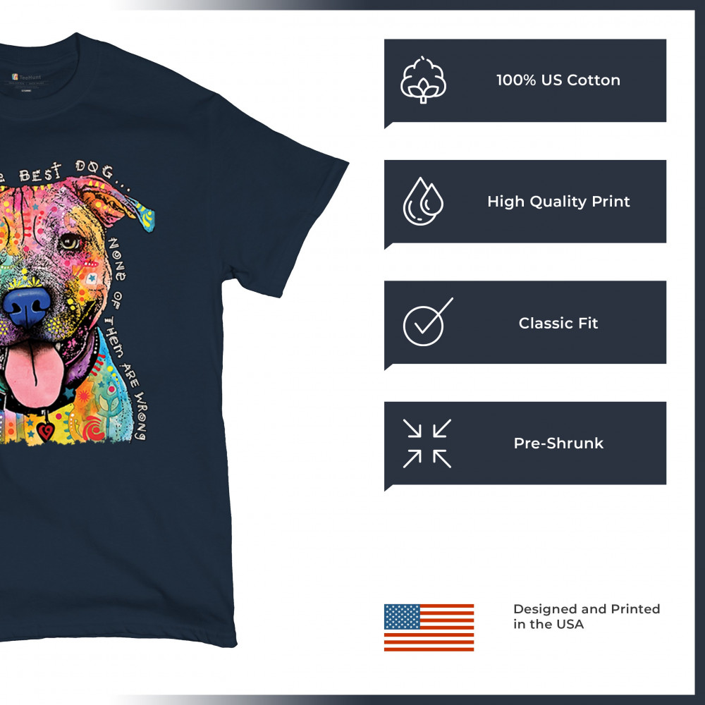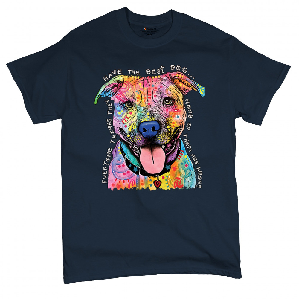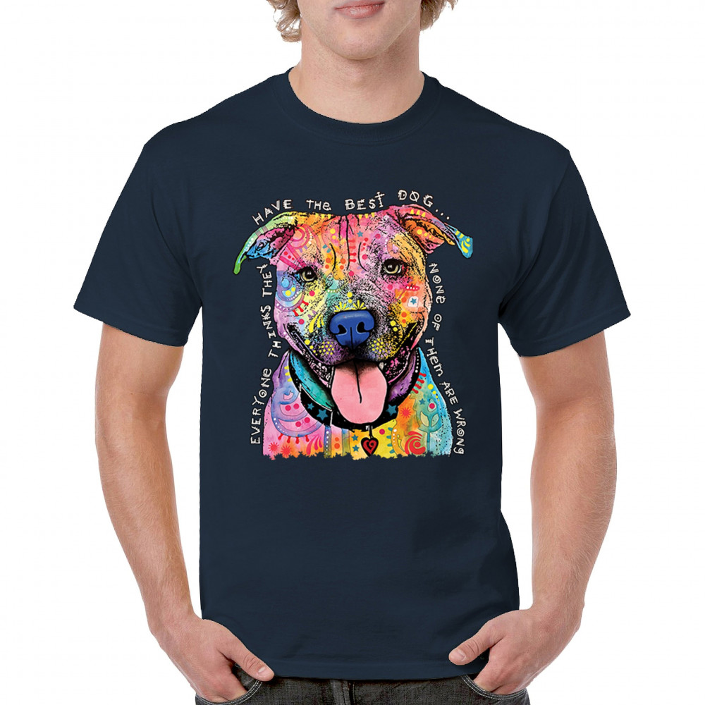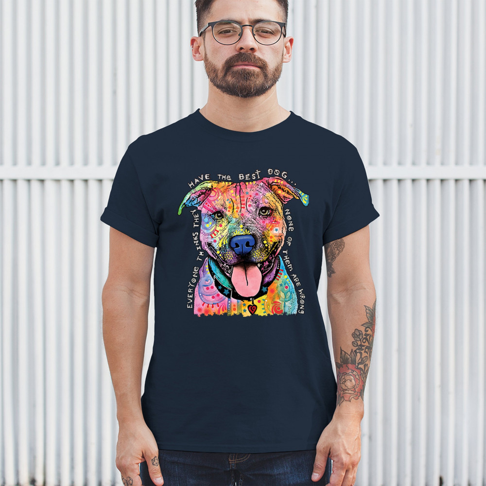 DEAN RUSSO COLORFUL PIT BULL t-shirt everyone has best dogs men's tee navy blue