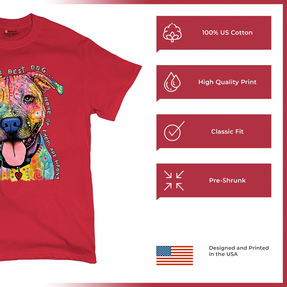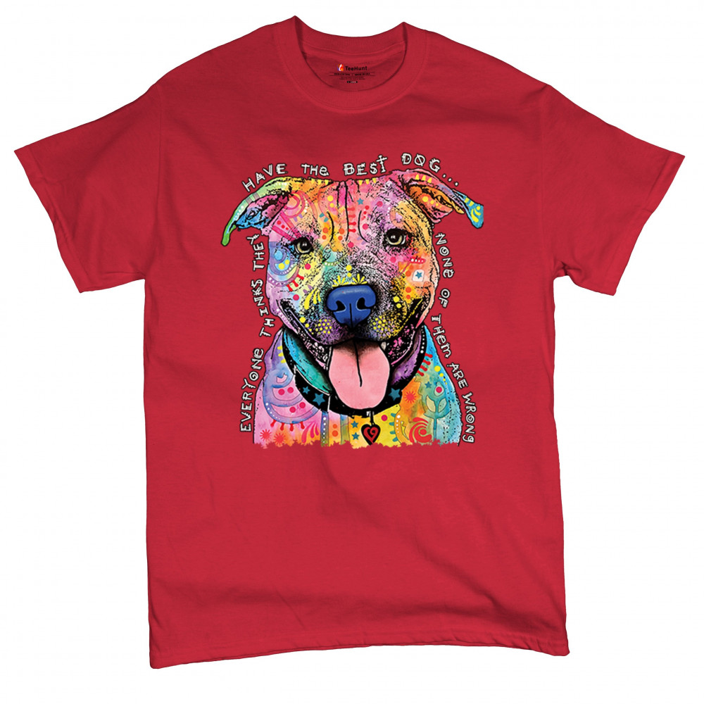 DEAN RUSSO COLORFUL PIT BULL t-shirt everyone has best dogs men's tee red