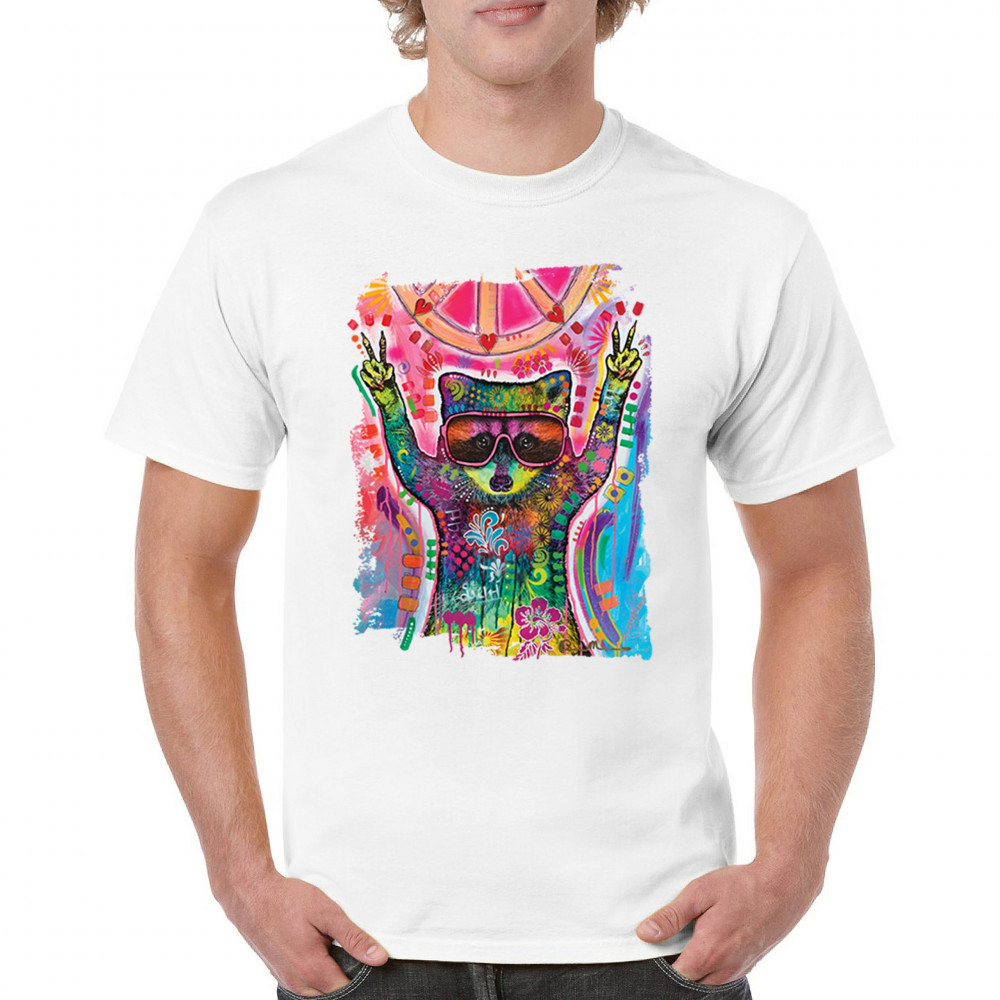 DEAN RUSSO COSMIC TRASH PANDA t-shirt funny weird hippie men's tee white