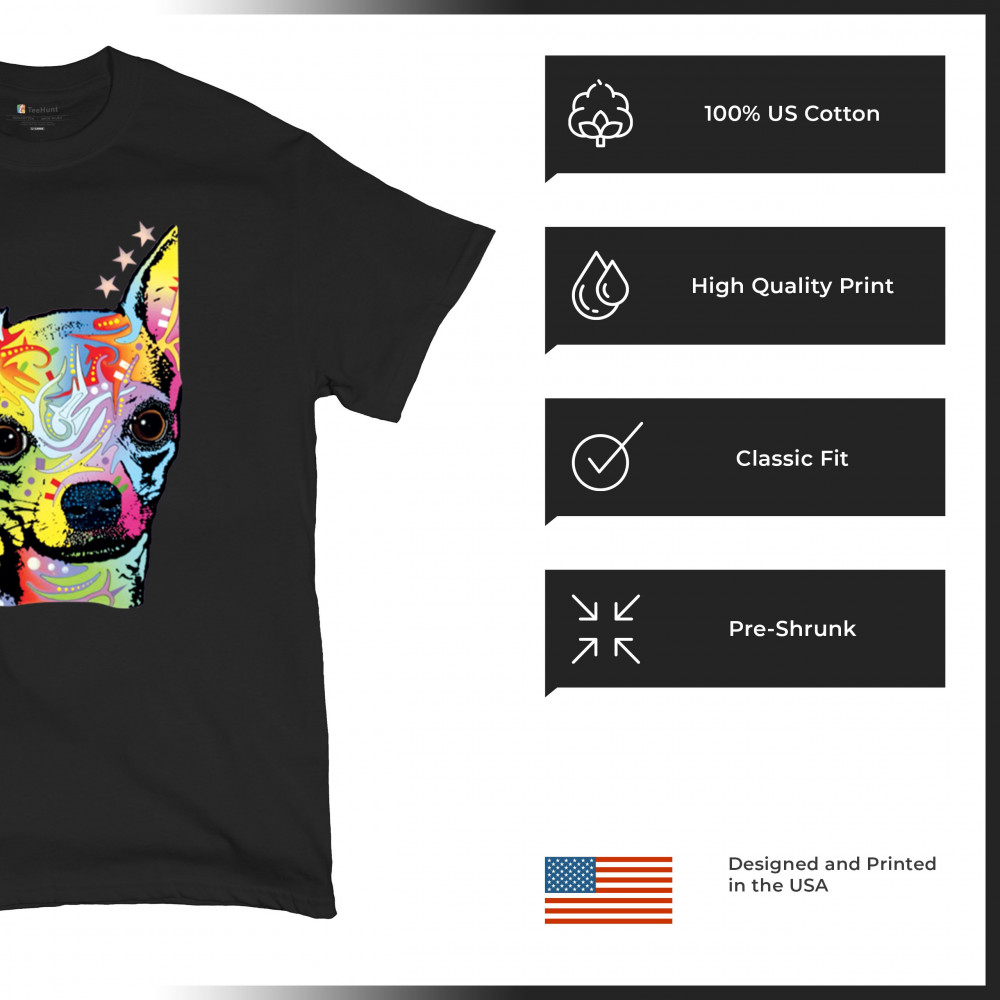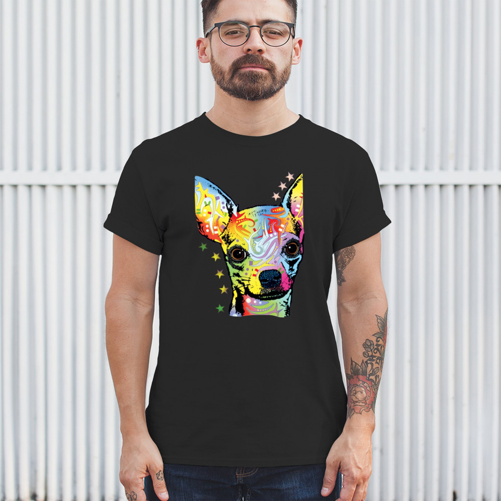 DEAN RUSSO CUTE CHIHUAHUA t-shirt neon colorful small dog pet men's tee black