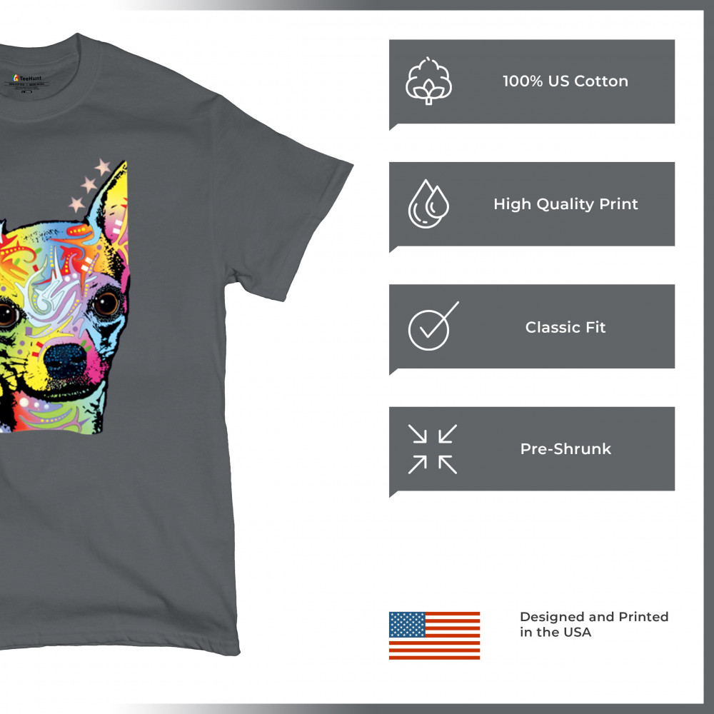 DEAN RUSSO CUTE CHIHUAHUA t-shirt neon colorful small dog pet men's tee charcoal