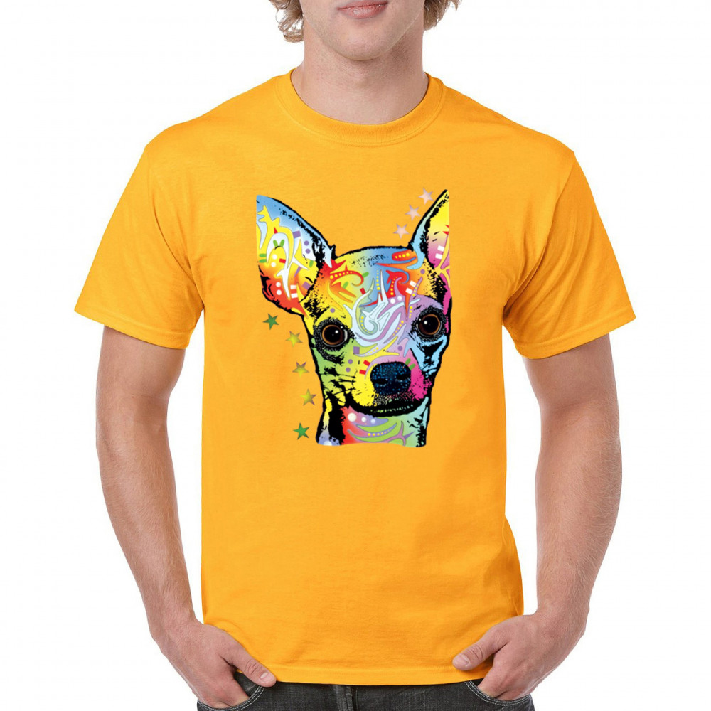 DEAN RUSSO CUTE CHIHUAHUA t-shirt neon colorful small dog pet men's tee yellow