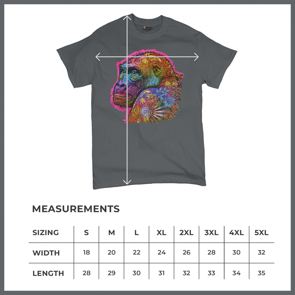 DEAN RUSSO CUTE GORILLA t-shirt colorful neon silverback ape art men's tee charcoal