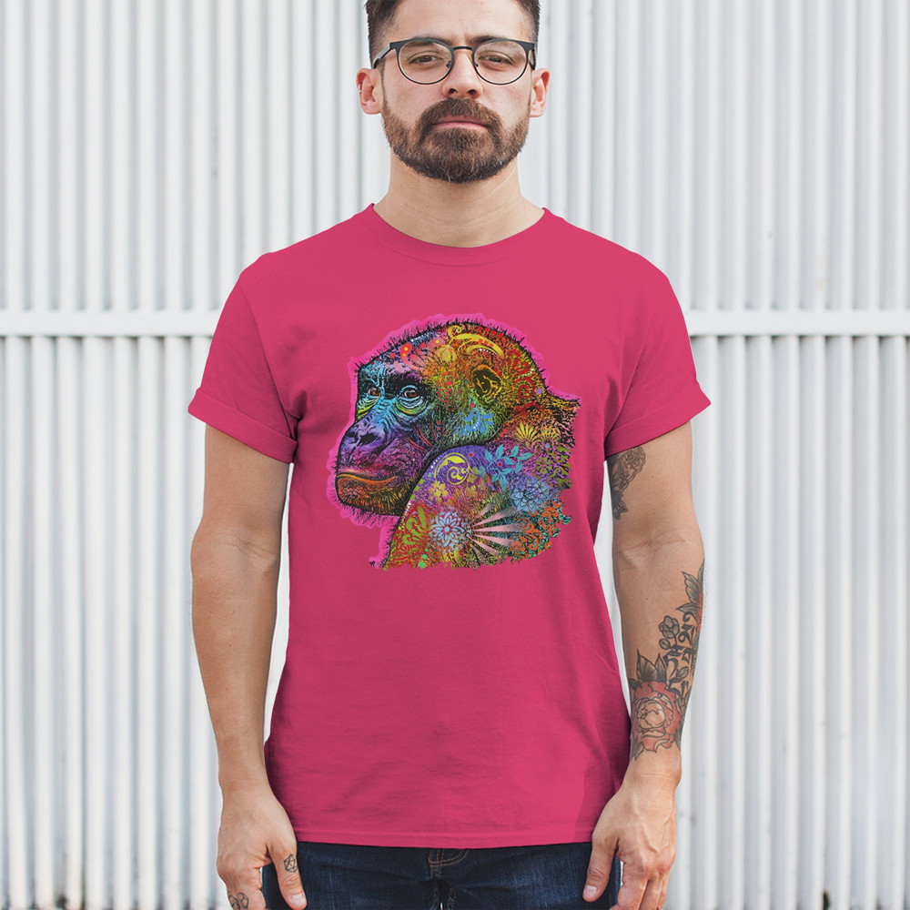 DEAN RUSSO CUTE GORILLA t-shirt colorful neon silverback ape art men's tee hot pink