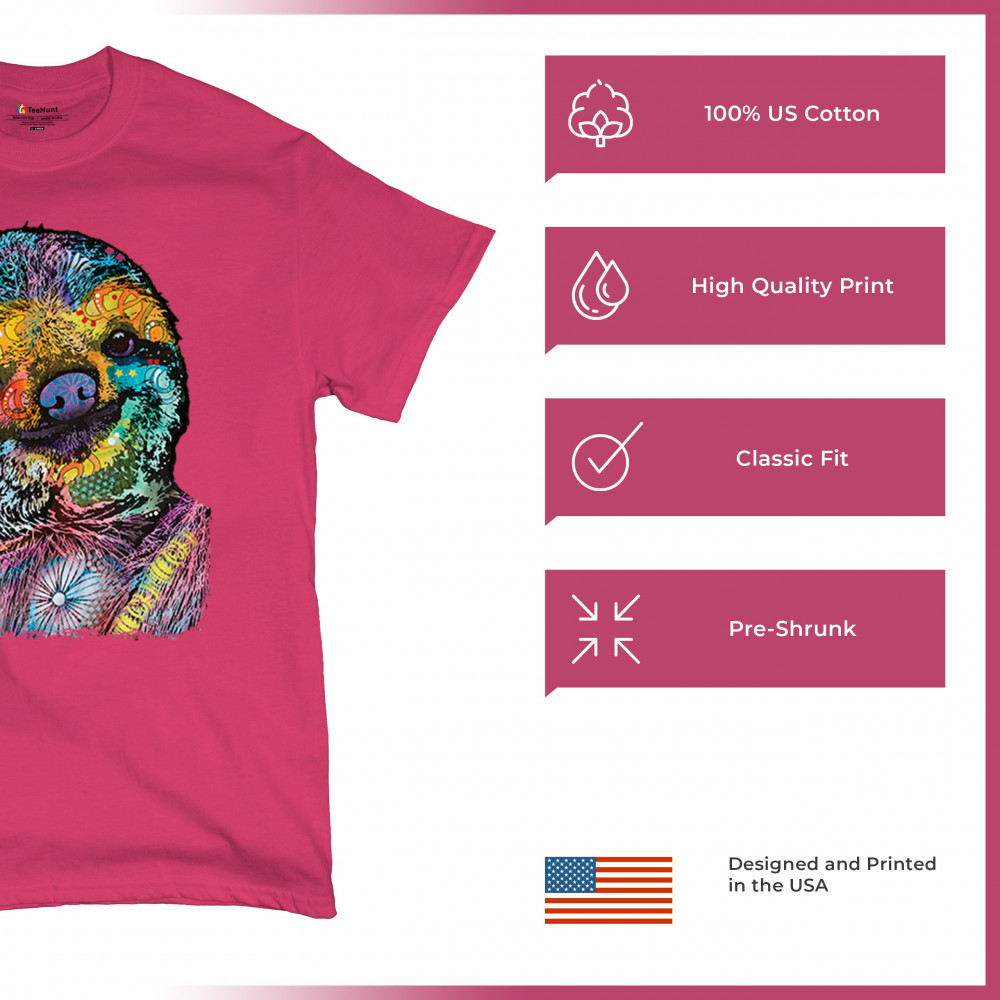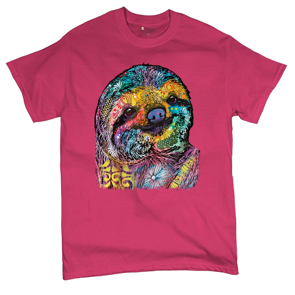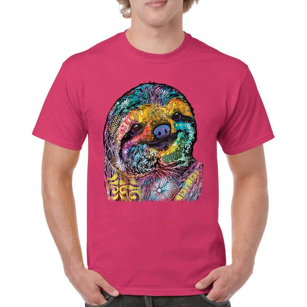 DEAN RUSSO CUTE LAZY SLOTH t-shirt funny wild life colorful men's tee hot pink
