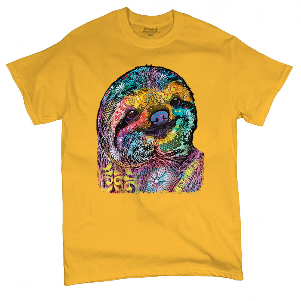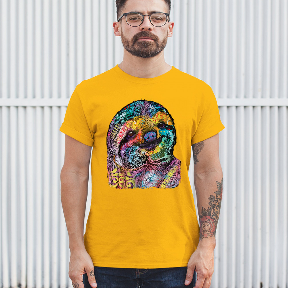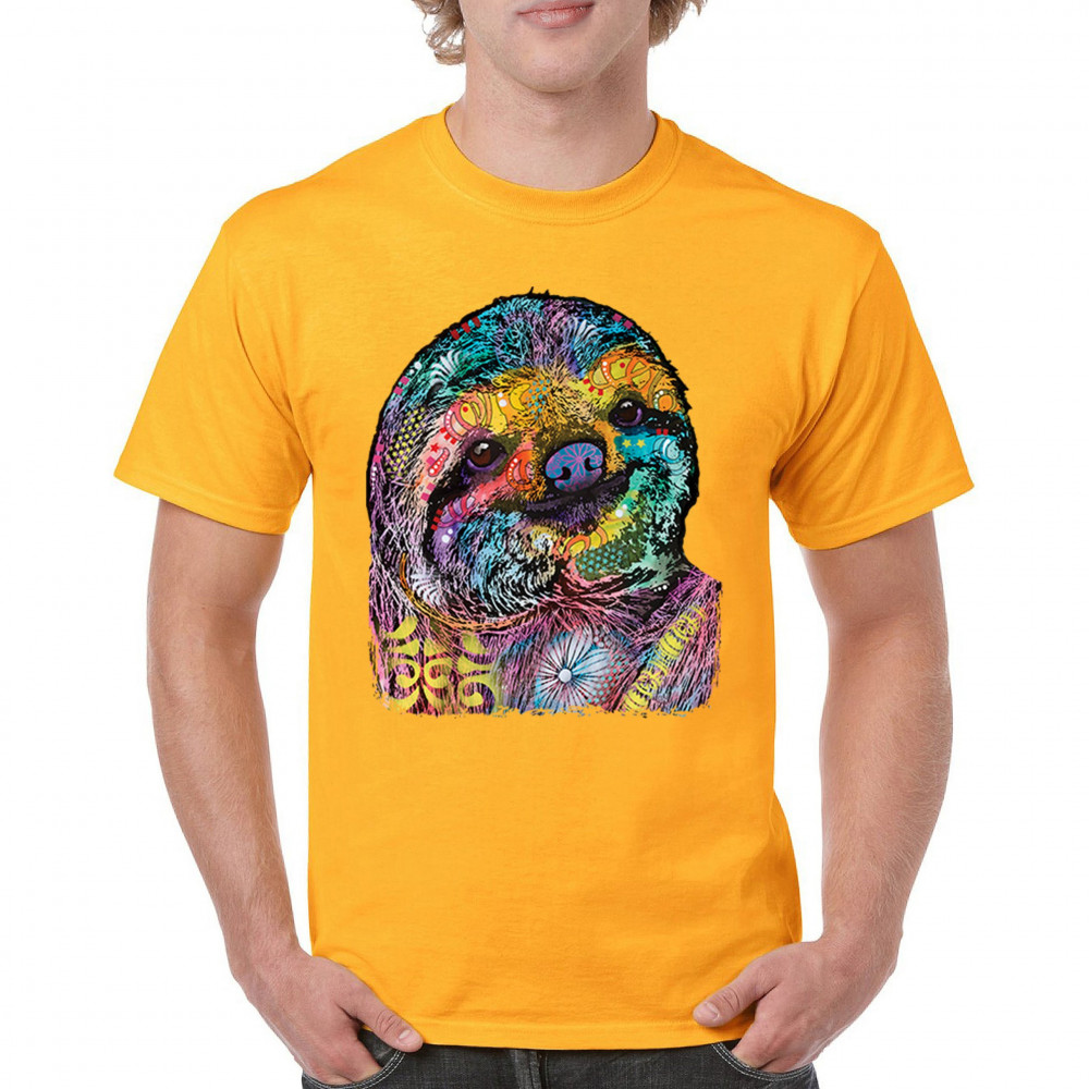DEAN RUSSO CUTE LAZY SLOTH t-shirt funny wild life colorful men's tee yellow