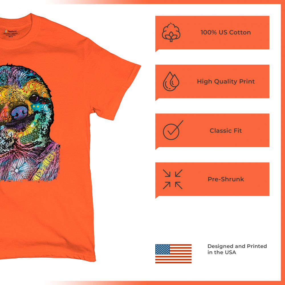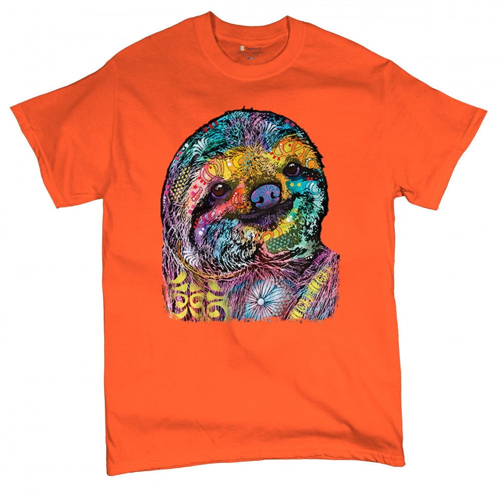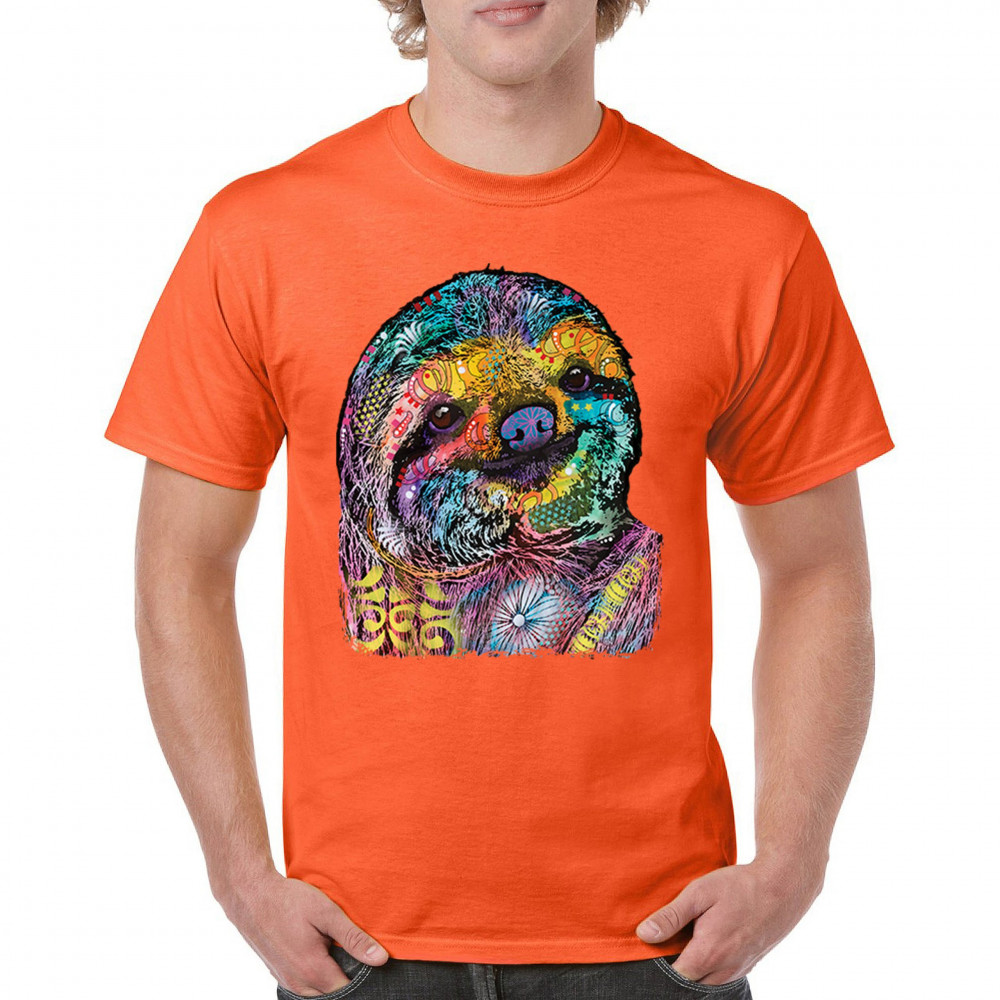 DEAN RUSSO CUTE LAZY SLOTH t-shirt funny wild life colorful men's tee orange