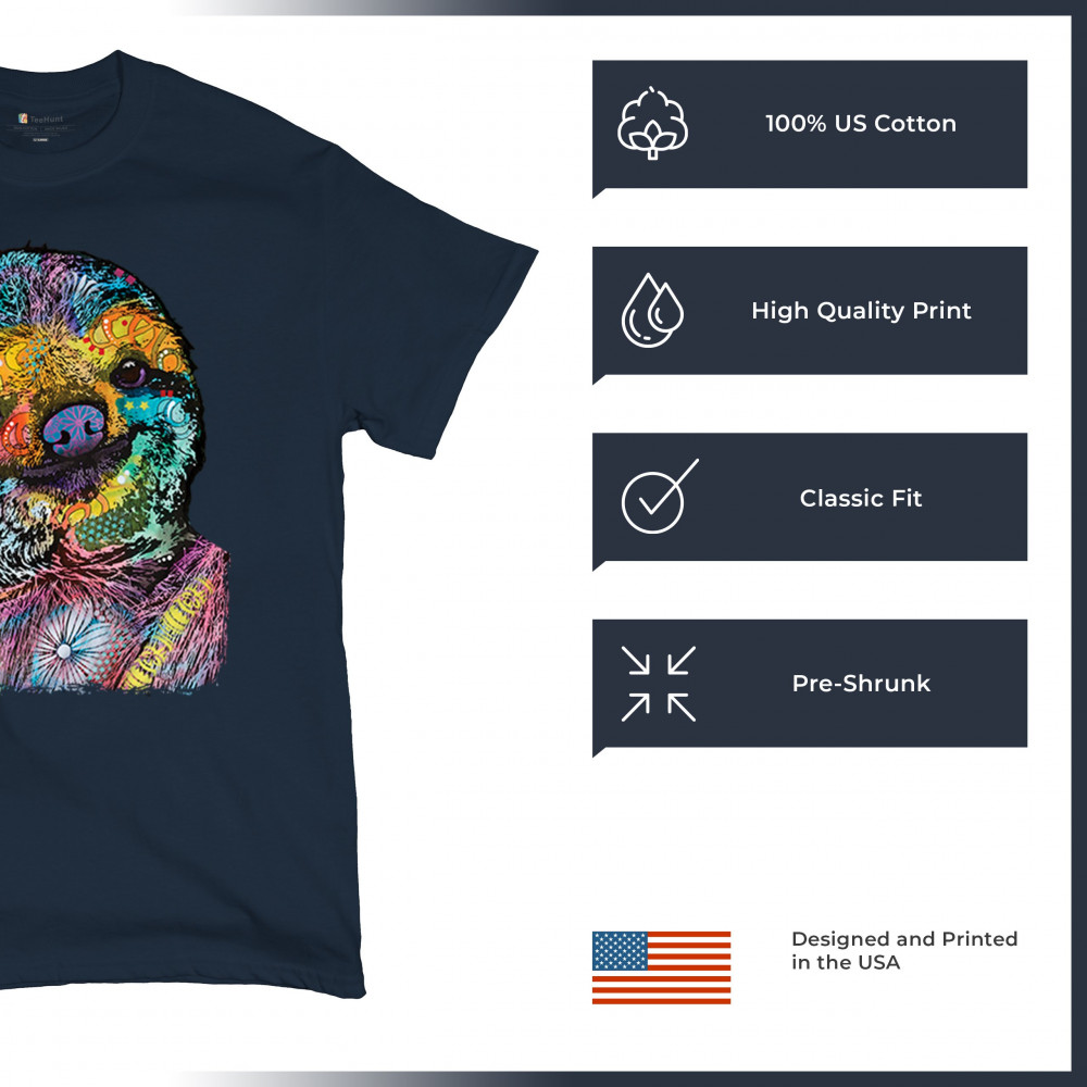 DEAN RUSSO CUTE LAZY SLOTH t-shirt funny wild life colorful men's tee navy blue