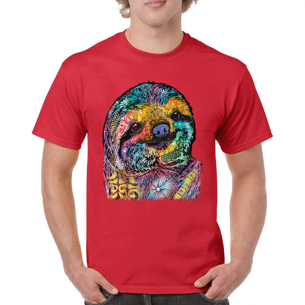 DEAN RUSSO CUTE LAZY SLOTH t-shirt funny wild life colorful men's tee red