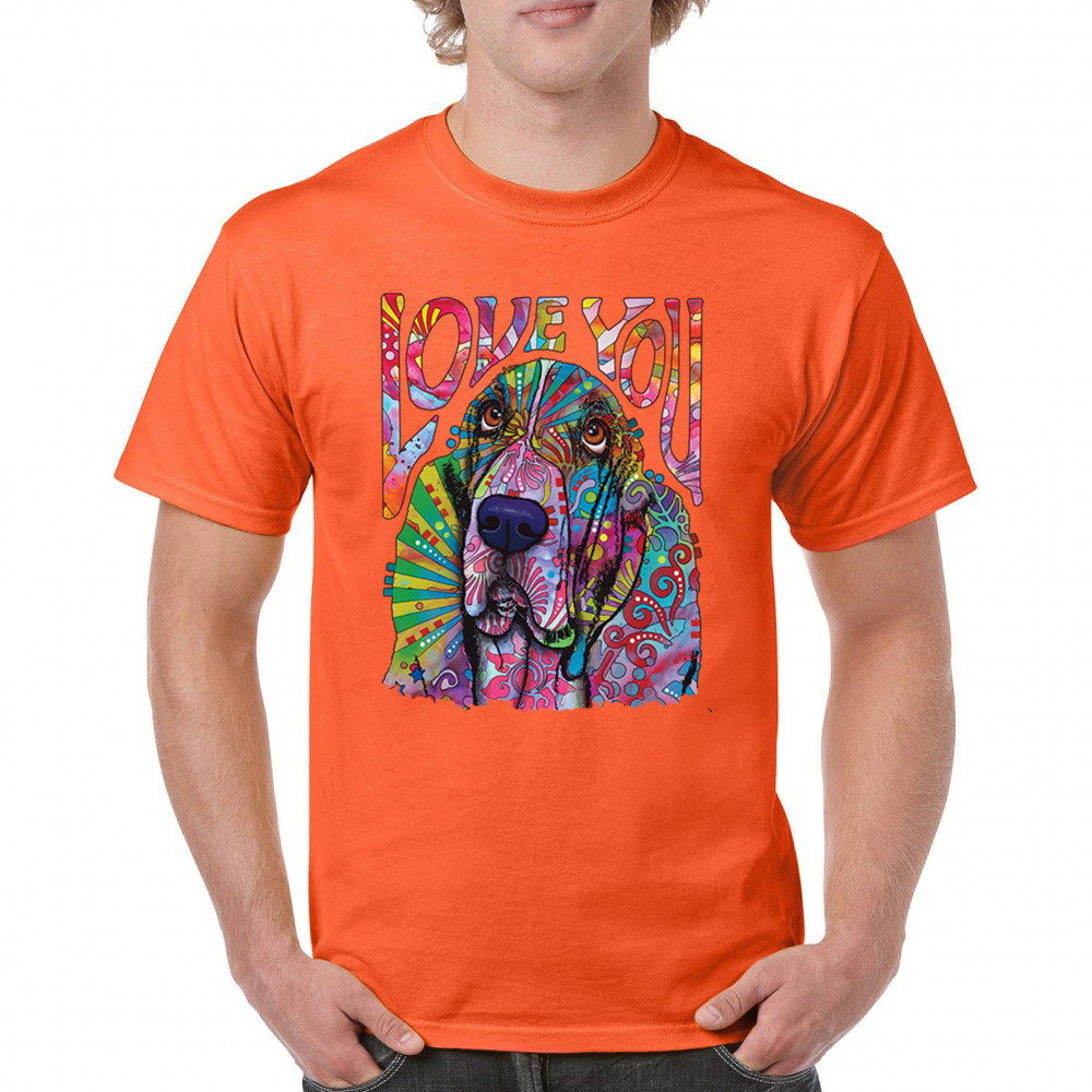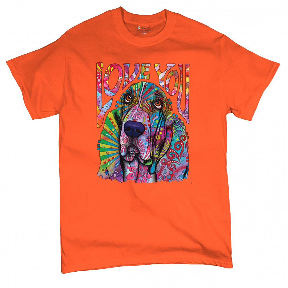 DEAN RUSSO CUTE LOVE YOU BASSET t-shirt colorful dog neon pet men's tee orange