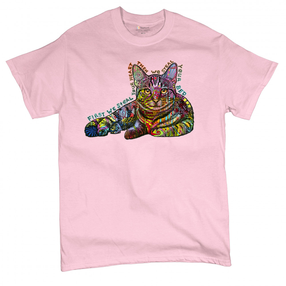 Dean Russo Colorful Cat First We Steal Your Heart Then We Steal Your Bed