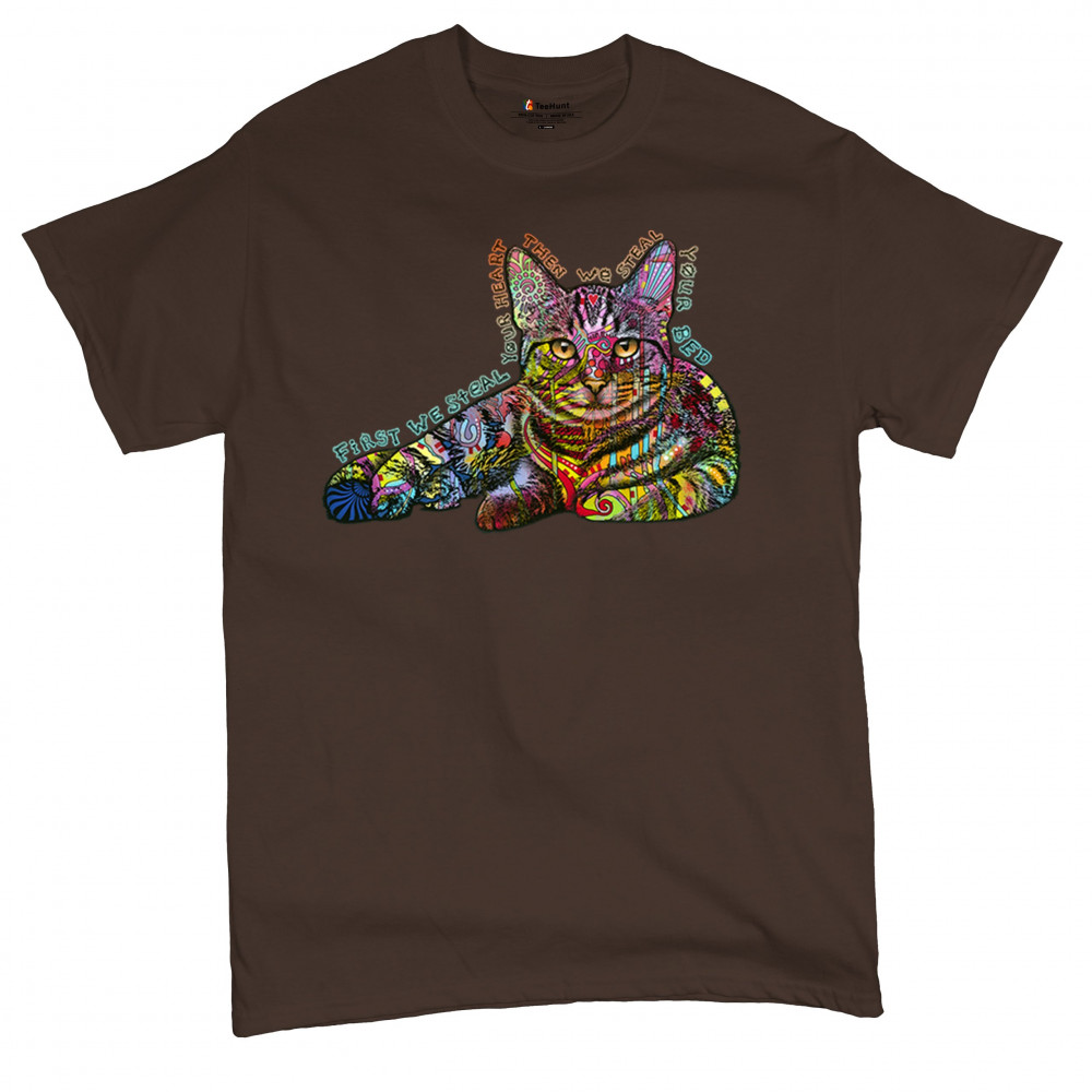 Dean Russo Colorful Cat First We Steal Your Heart Then We Steal Your Bed