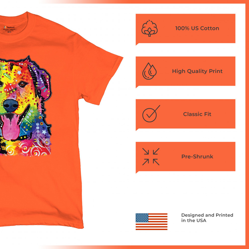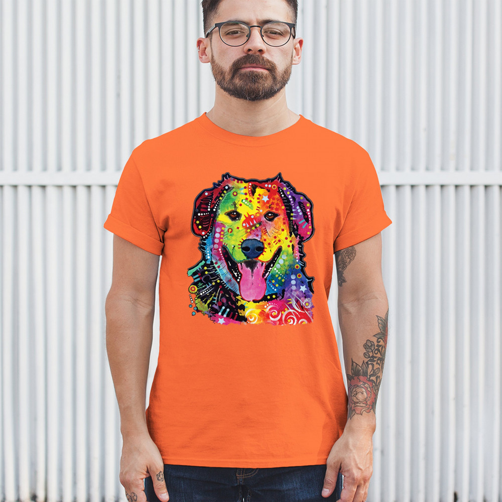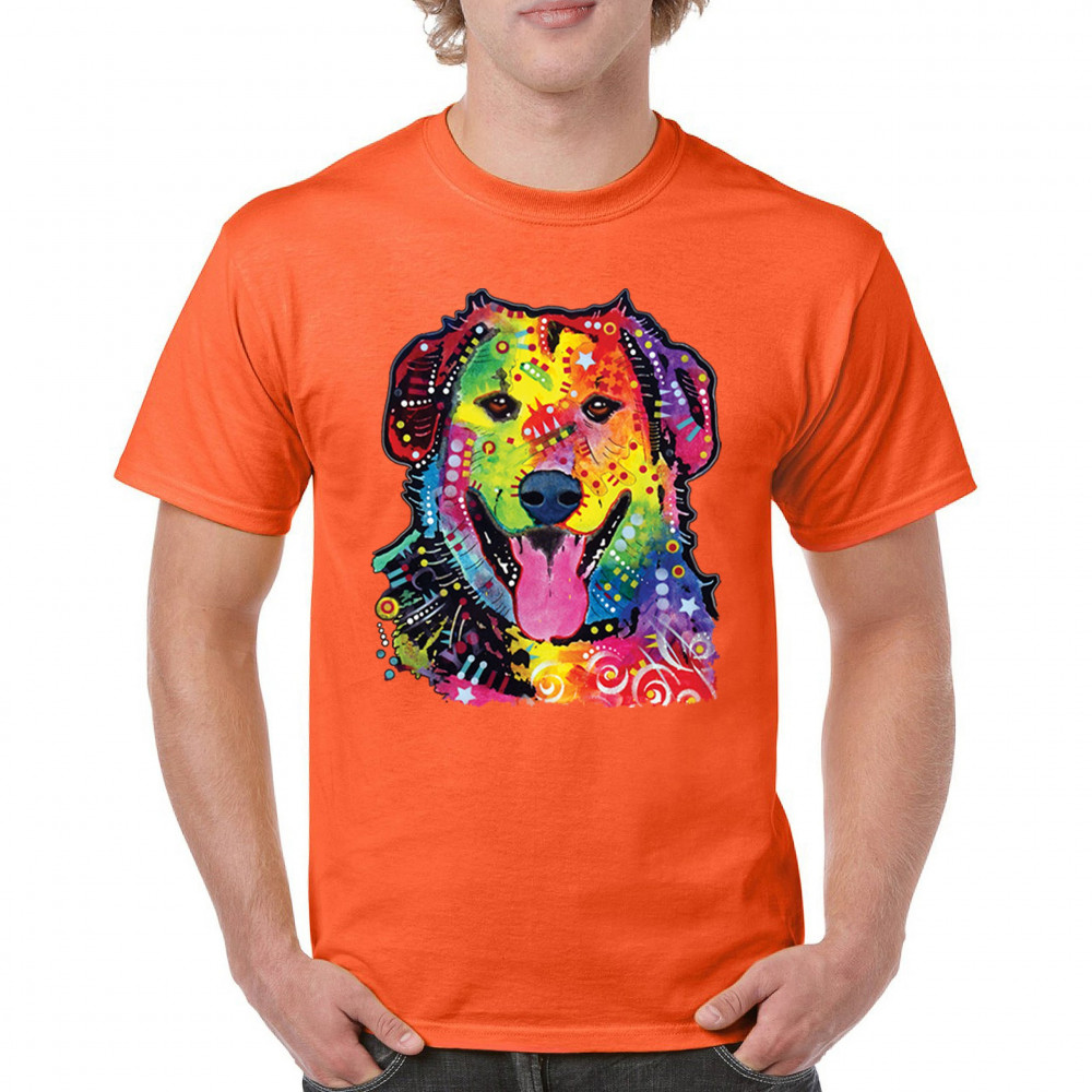 DEAN RUSSO CUTE NEON DOG t-shirt rescue adopt a pet colorful pet men's tee orange