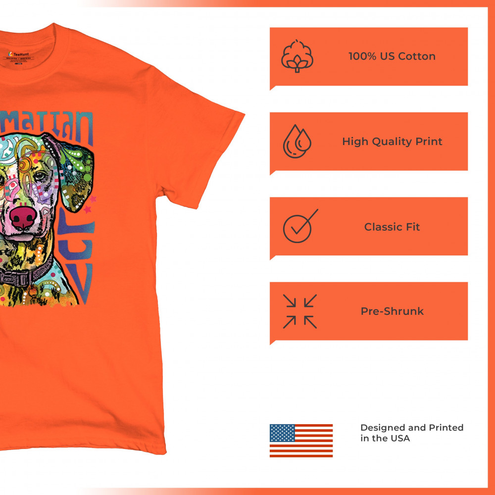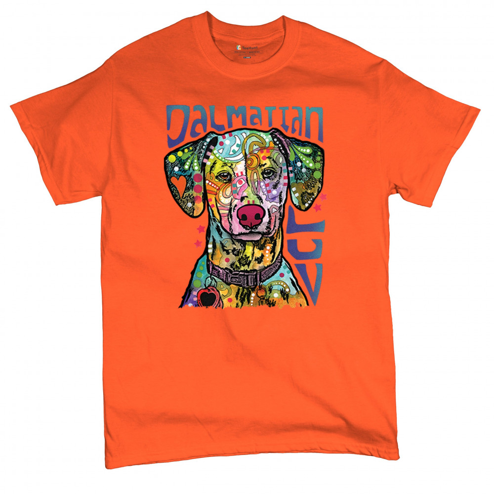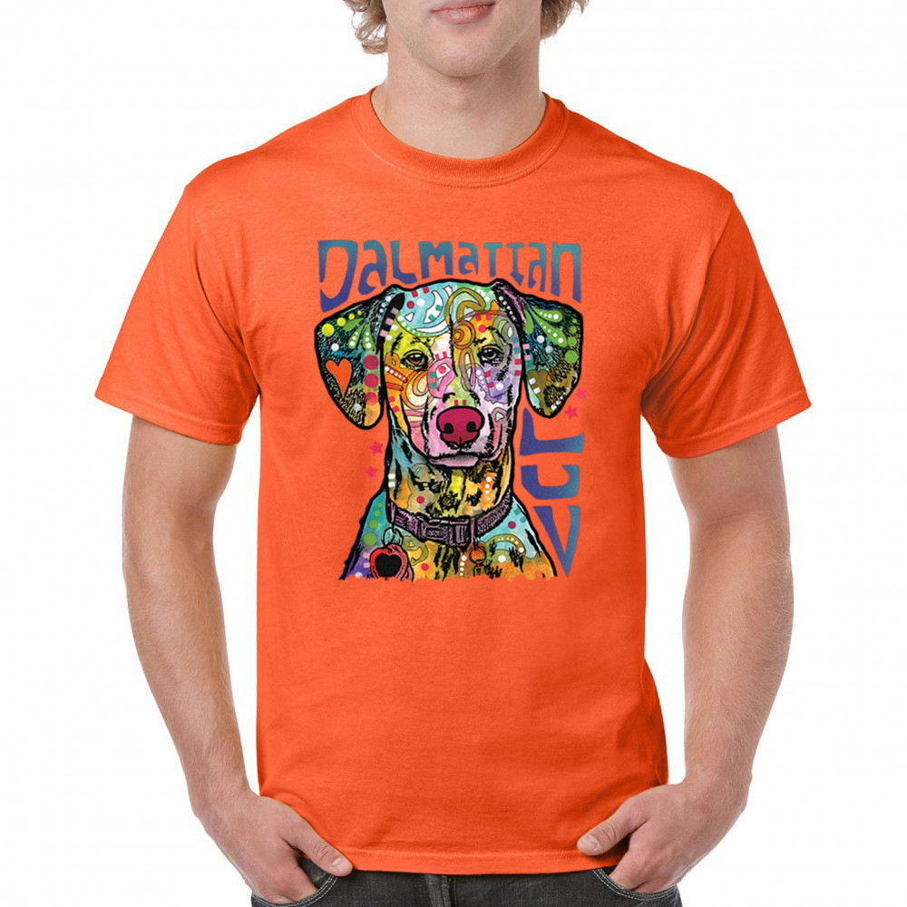 DEAN RUSSO DALMATIAN LUV COLORFUL DOG t-shirt neon puppy lover men's tee orange