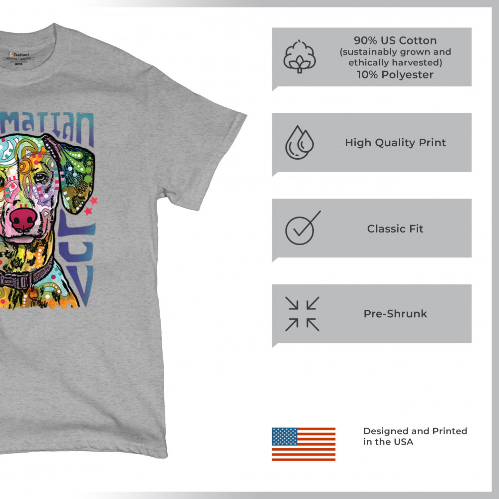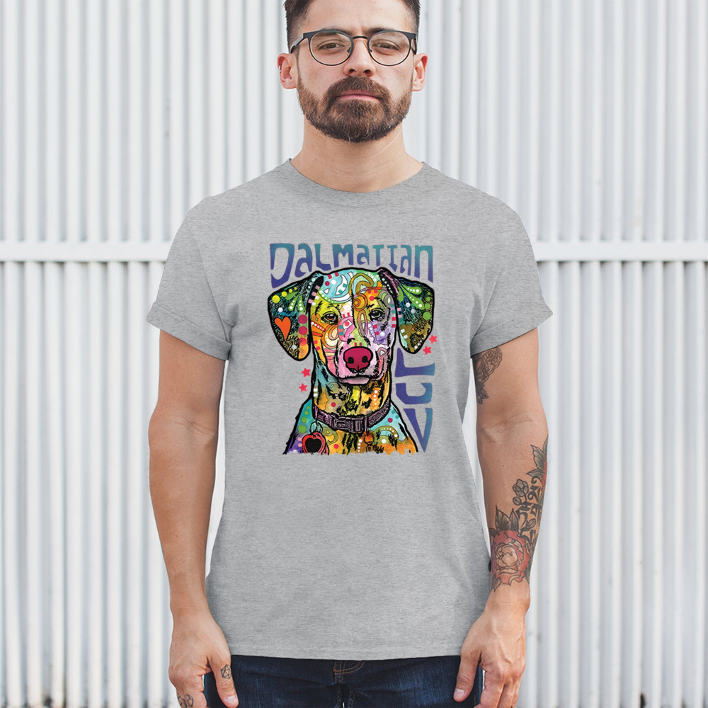 DEAN RUSSO DALMATIAN LUV COLORFUL DOG t-shirt neon puppy lover men's tee gray