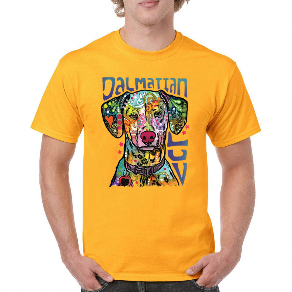 DEAN RUSSO DALMATIAN LUV COLORFUL DOG t-shirt neon puppy lover men's tee yellow
