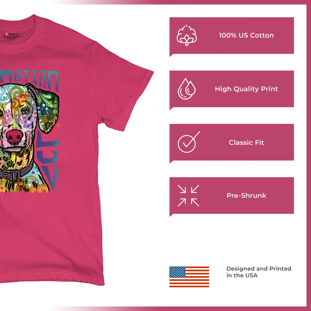 DEAN RUSSO DALMATIAN LUV COLORFUL DOG t-shirt neon puppy lover men's tee hot pink