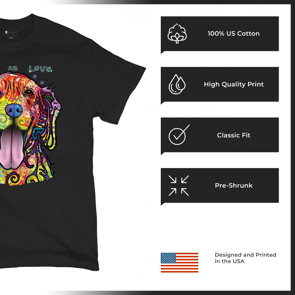 DEAN RUSSO DOG IS LOVE LABRADOR RETRIEVER t-shirt happy pet men's tee black