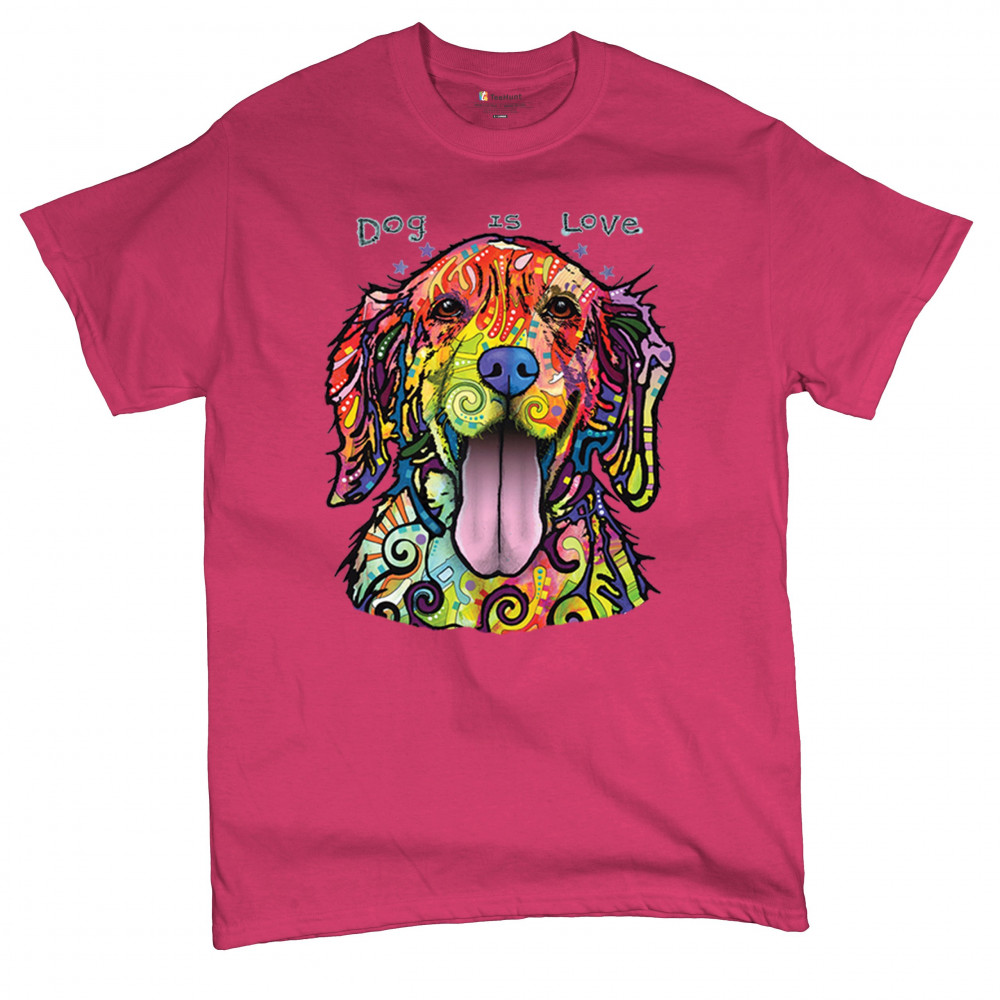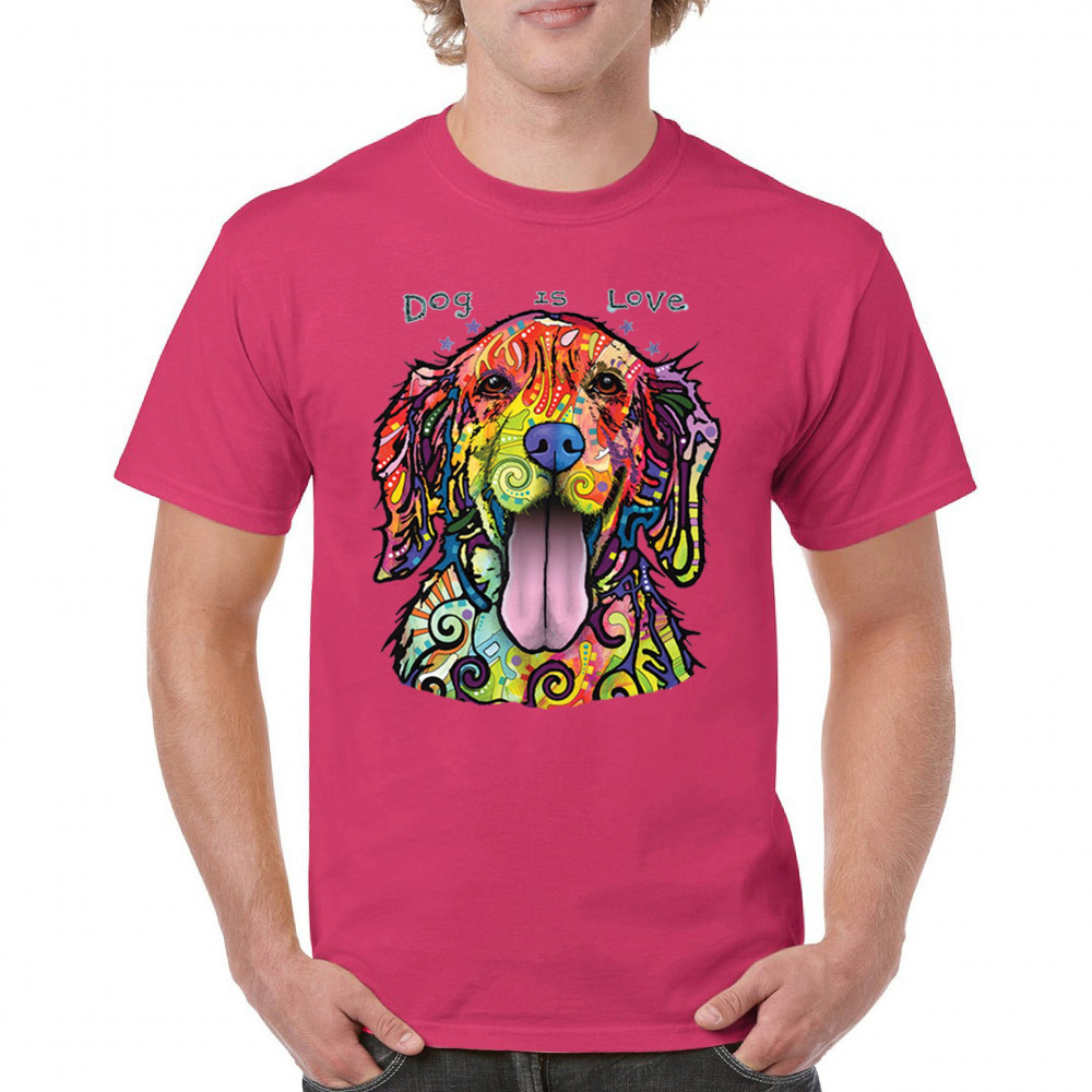 DEAN RUSSO DOG IS LOVE LABRADOR RETRIEVER t-shirt happy pet men's tee hot pink