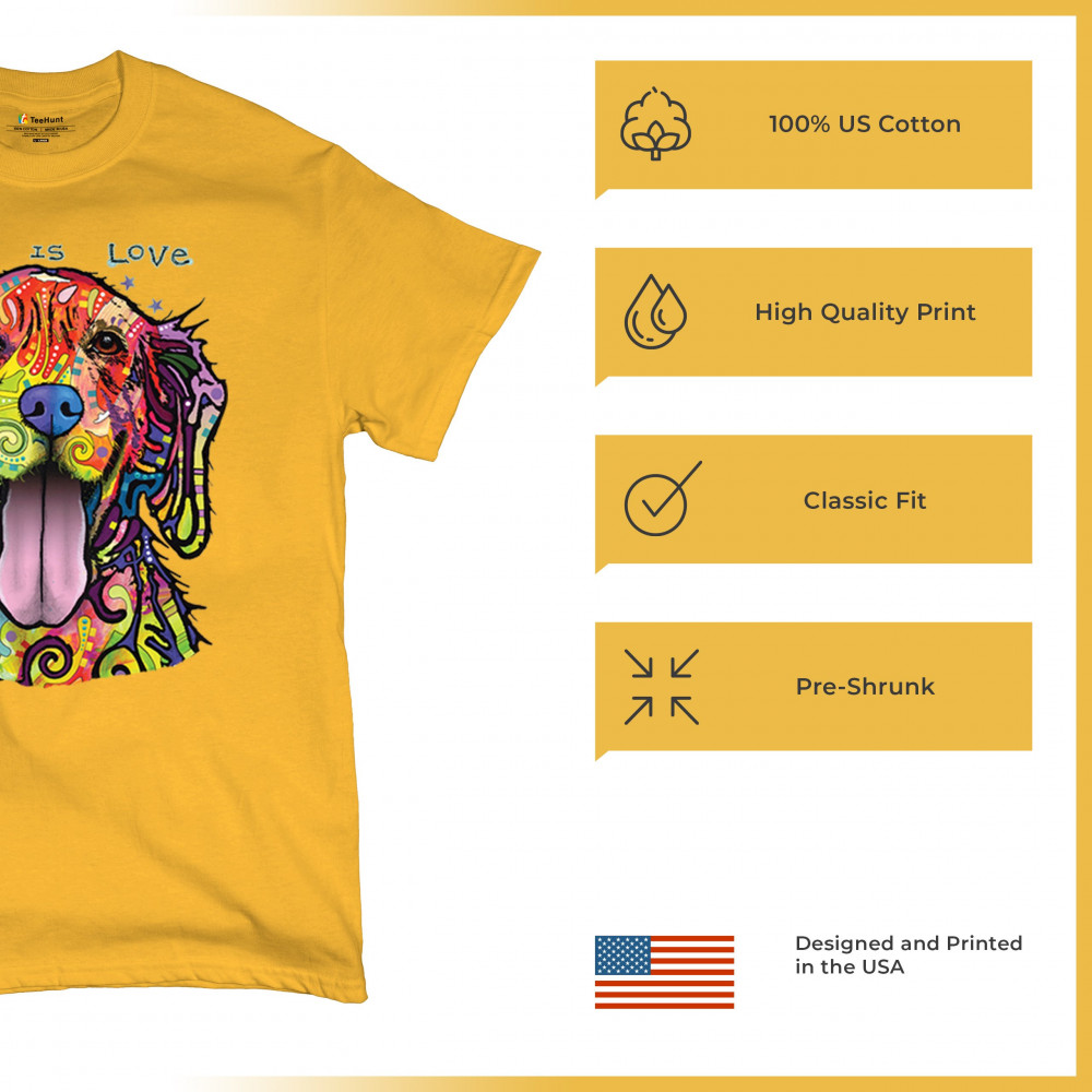 DEAN RUSSO DOG IS LOVE LABRADOR RETRIEVER t-shirt happy pet men's tee yellow