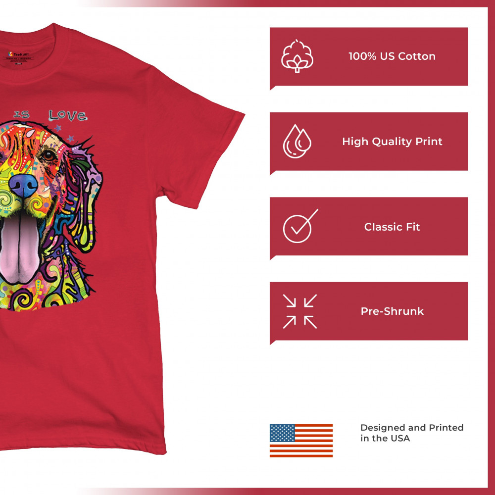 DEAN RUSSO DOG IS LOVE LABRADOR RETRIEVER t-shirt happy pet men's tee red