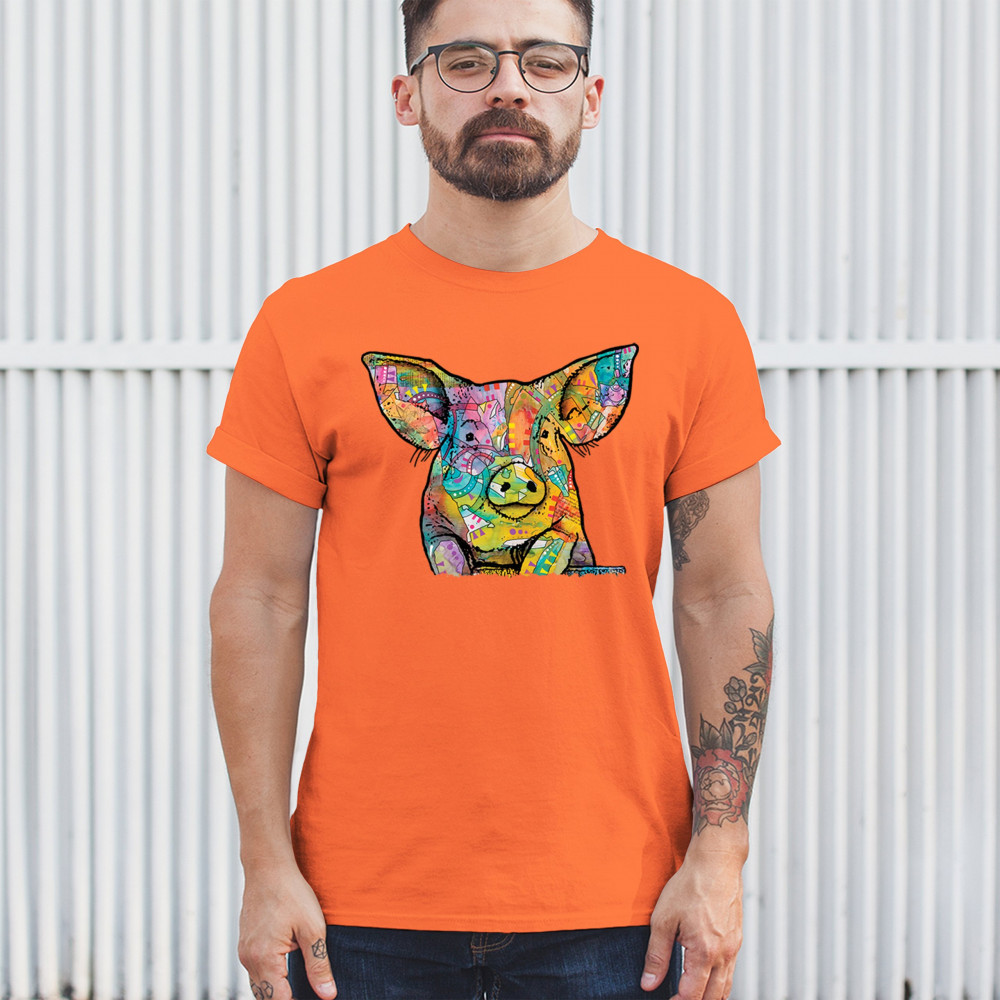 DEAN RUSSO FUNNY CUTE PIG t-shirt farm piglet lover barn men's tee orange
