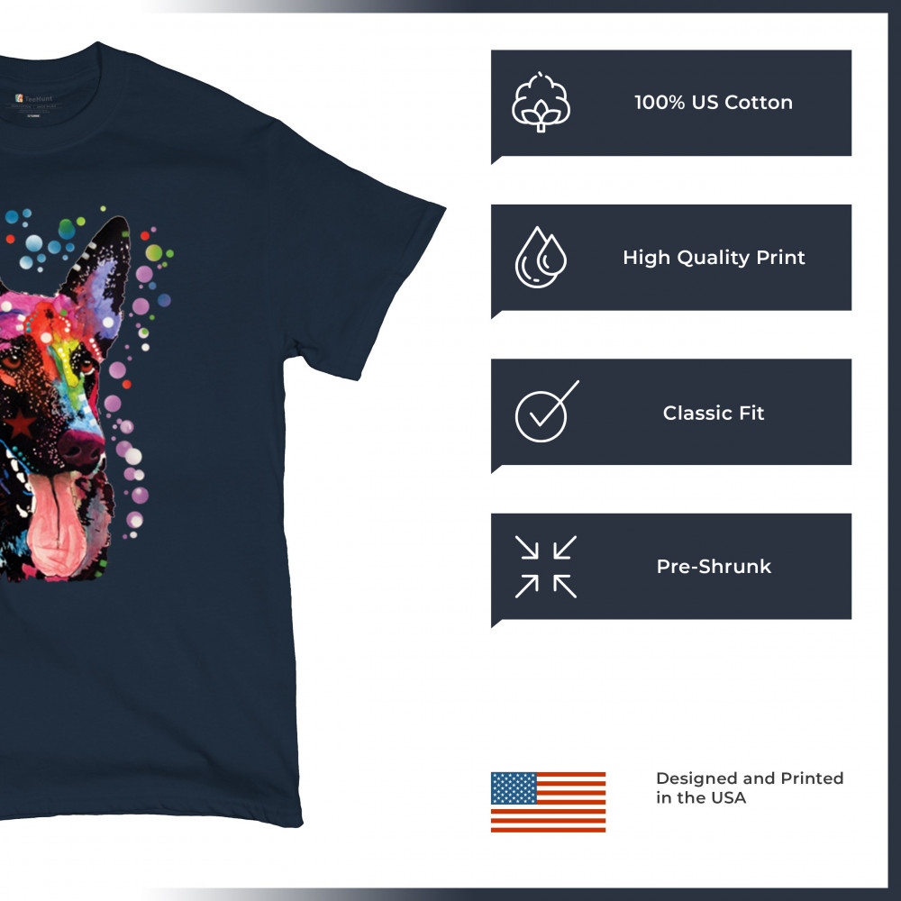 DEAN RUSSO GERMAN SHEPHERD t-shirt colorful dog best friend men's tee navy blue