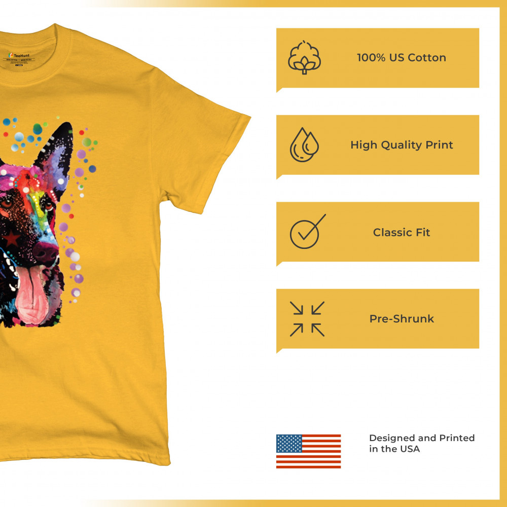 DEAN RUSSO GERMAN SHEPHERD t-shirt colorful dog best friend men's tee yellow