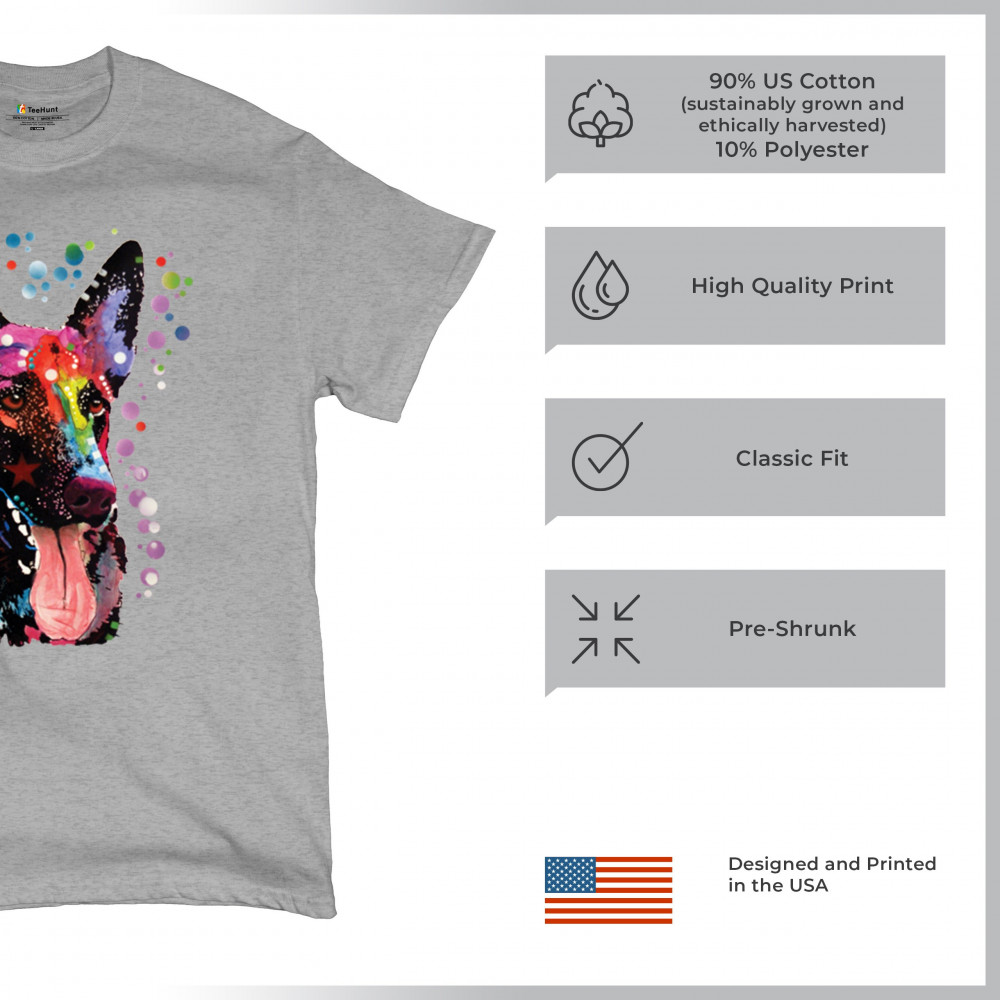 DEAN RUSSO GERMAN SHEPHERD t-shirt colorful dog best friend men's tee gray