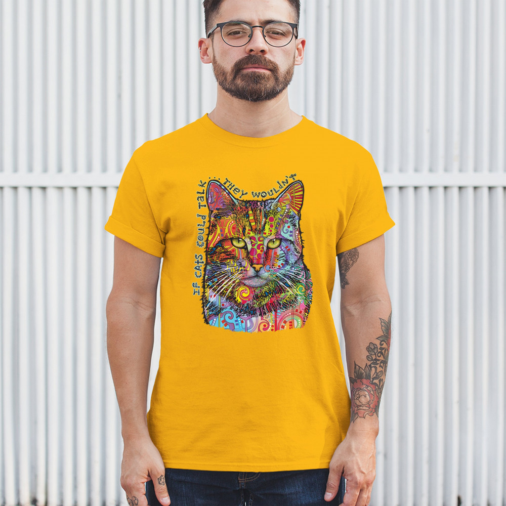DEAN RUSSO IF CATS COULD TALK THEY WOULDN'T t-shirt cute cat men's tee yellow