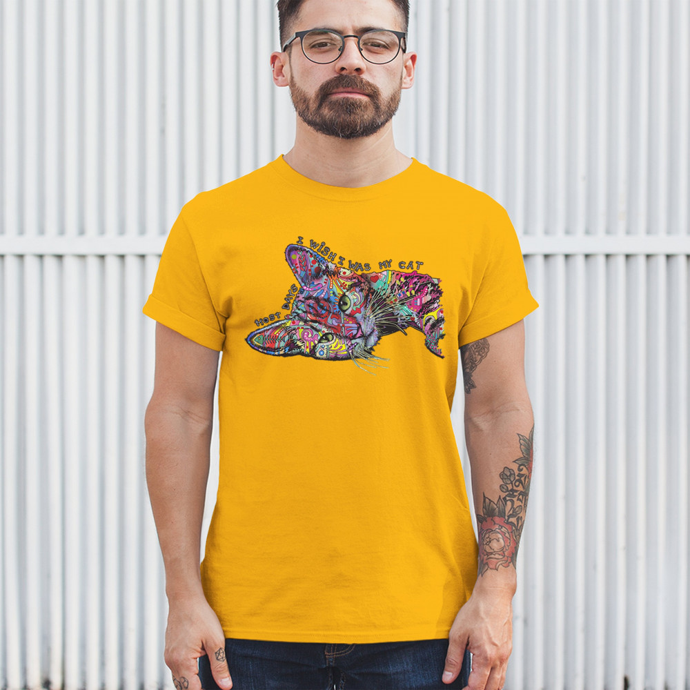 DEAN RUSSO MOST DAYS I WISH I WAS MY CAT t-shirt cute kitten meow men's tee yellow