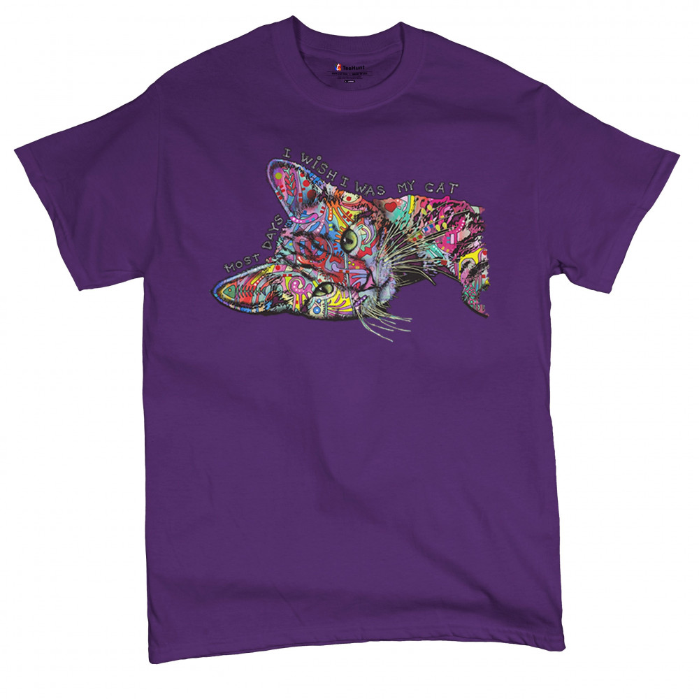 DEAN RUSSO MOST DAYS I WISH I WAS MY CAT t-shirt cute kitten meow men's tee purple