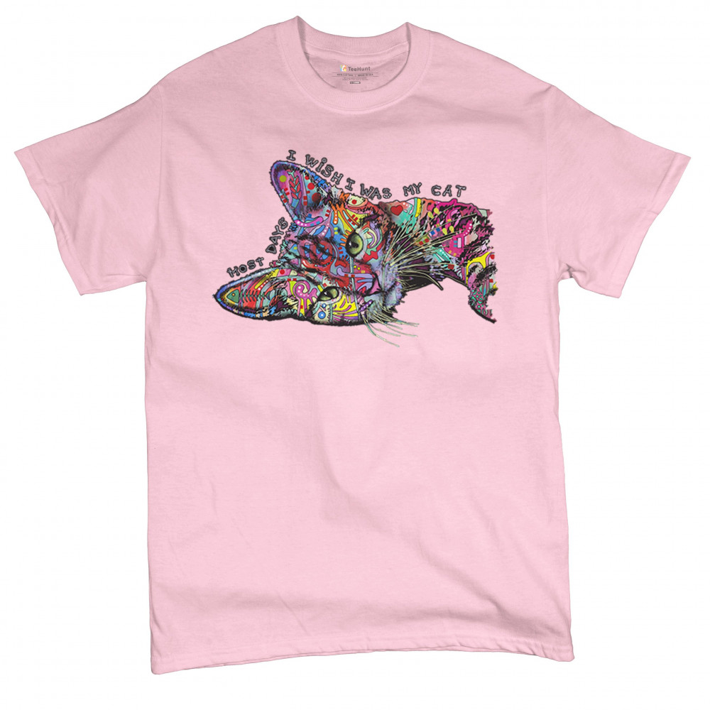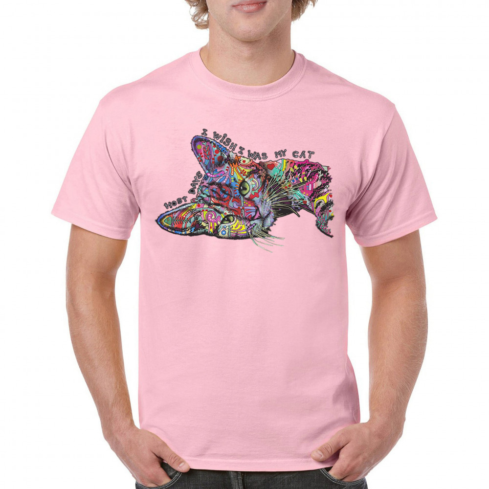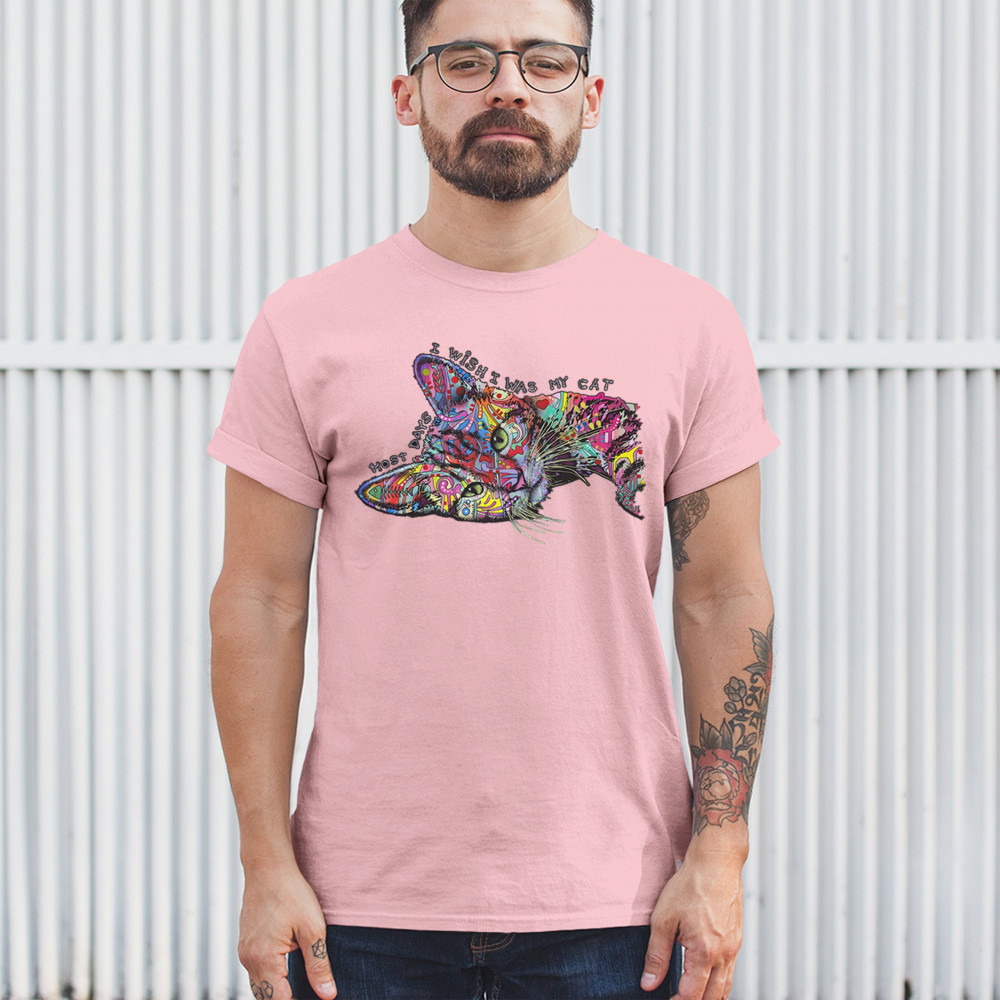 DEAN RUSSO MOST DAYS I WISH I WAS MY CAT t-shirt cute kitten meow men's tee light pink